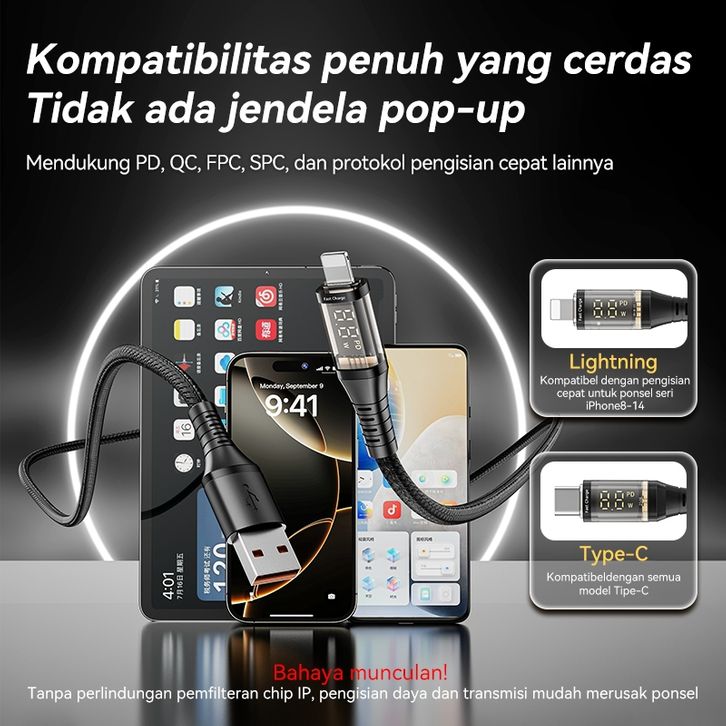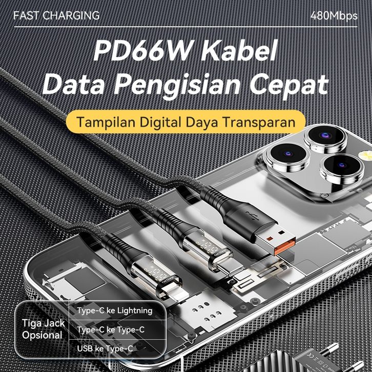 Kabel Data Hp Basike Kabel Data iPhone Fast Charging 66W Type C to Lightning Type C Micro USB iOS Android original