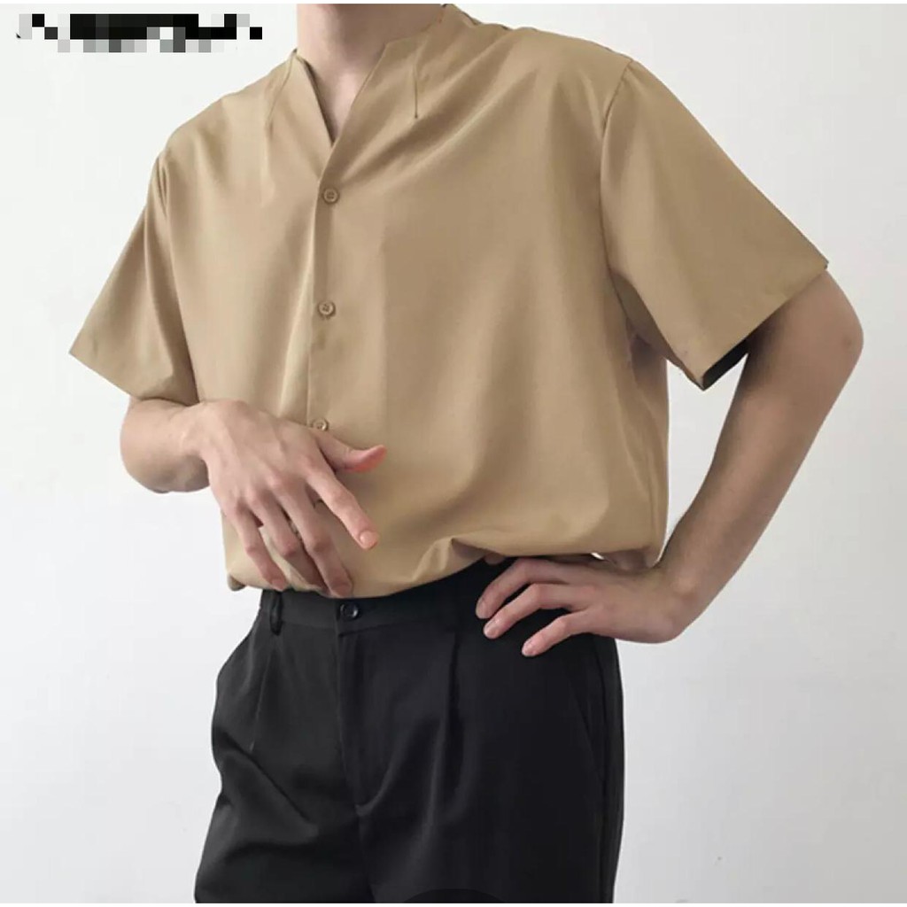 KEMEJA PRIA V-NECK KANCING LENGAN PENDEK TERBARU/FASHION PRIA