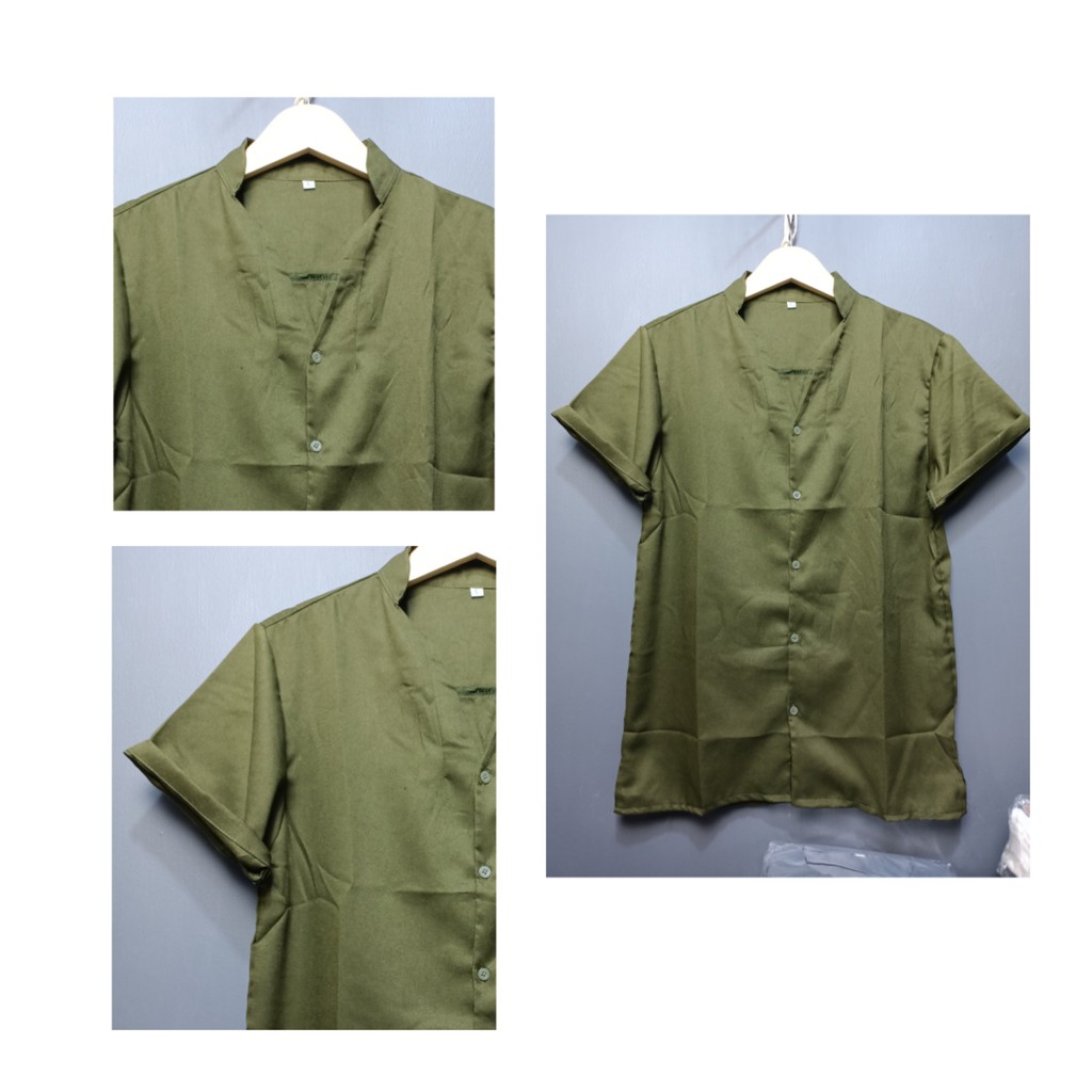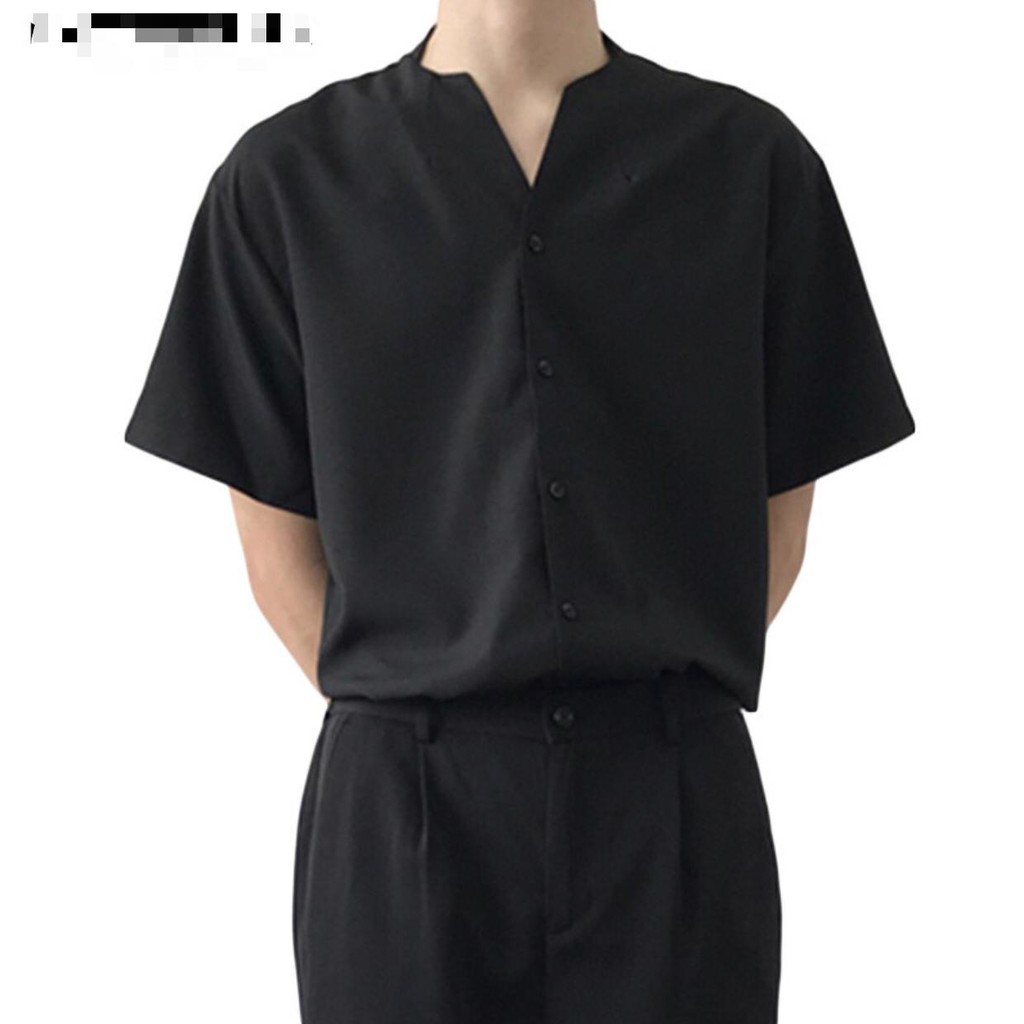 KEMEJA PRIA V-NECK KANCING LENGAN PENDEK TERBARU/FASHION PRIA
