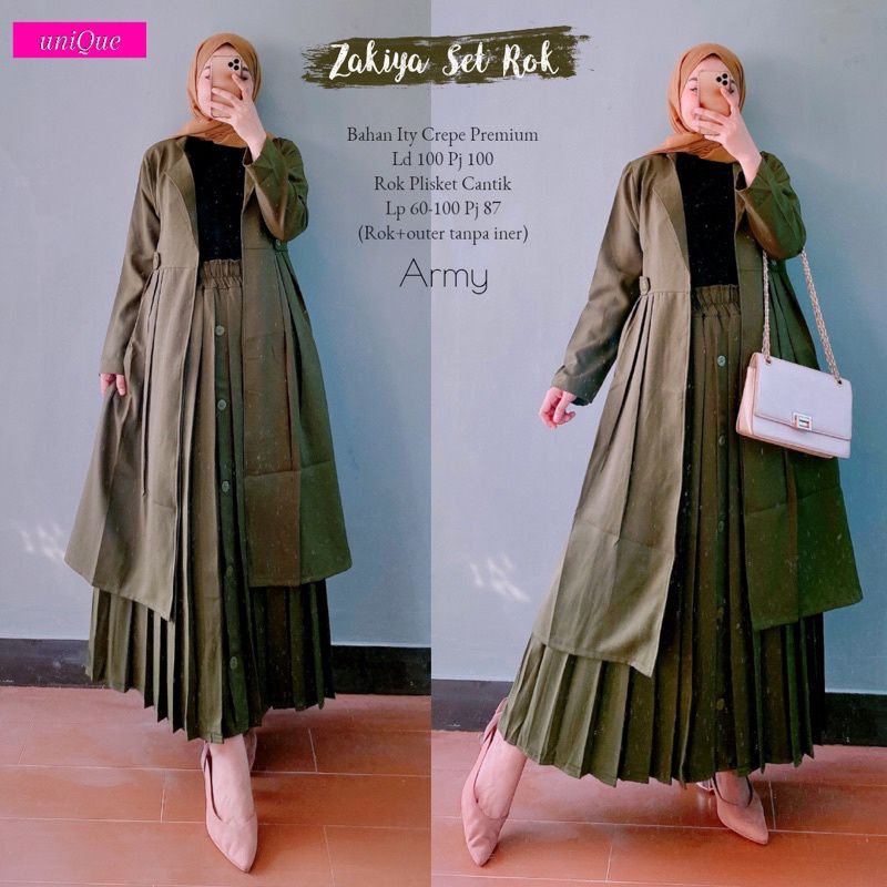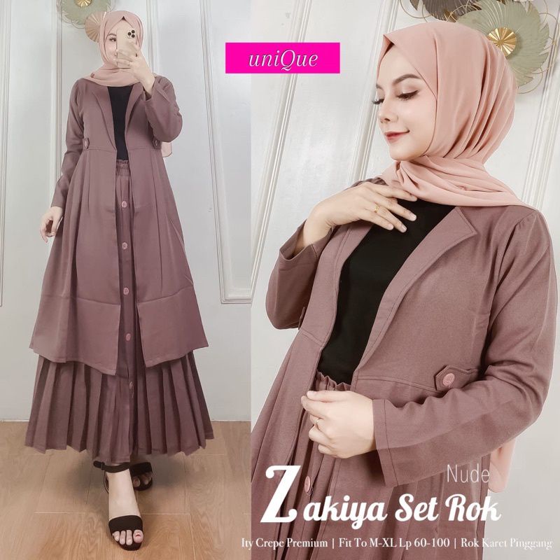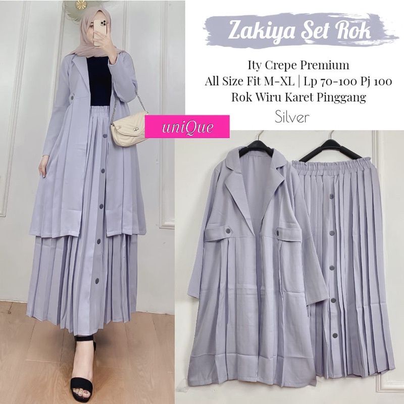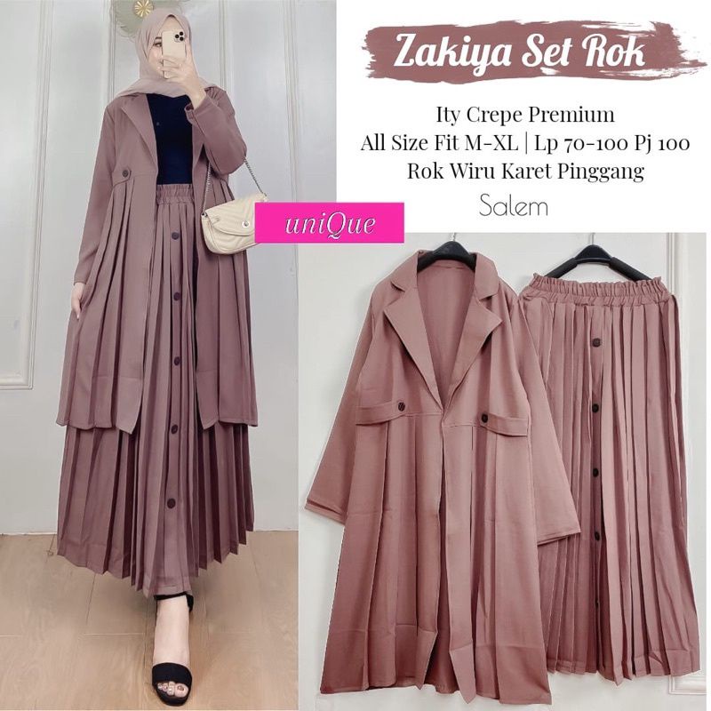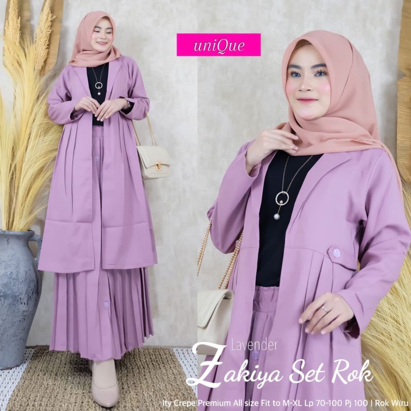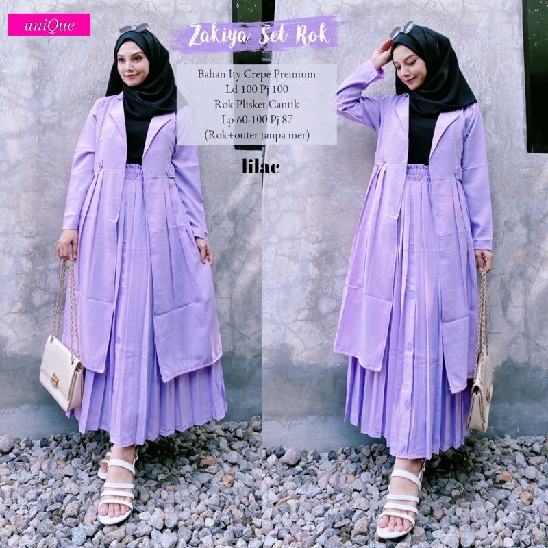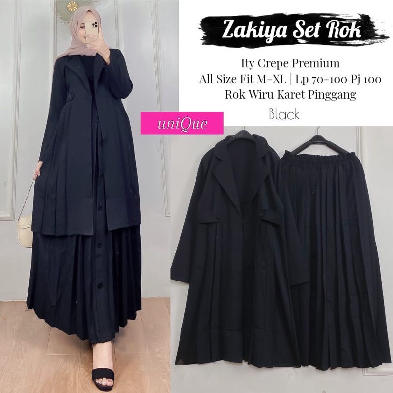 ONE SET + ROK TUNIK WANITA (ZAKIYA SET ROK) MUSLIM JUMBO BAHAN ITTY CREPE TERBARU