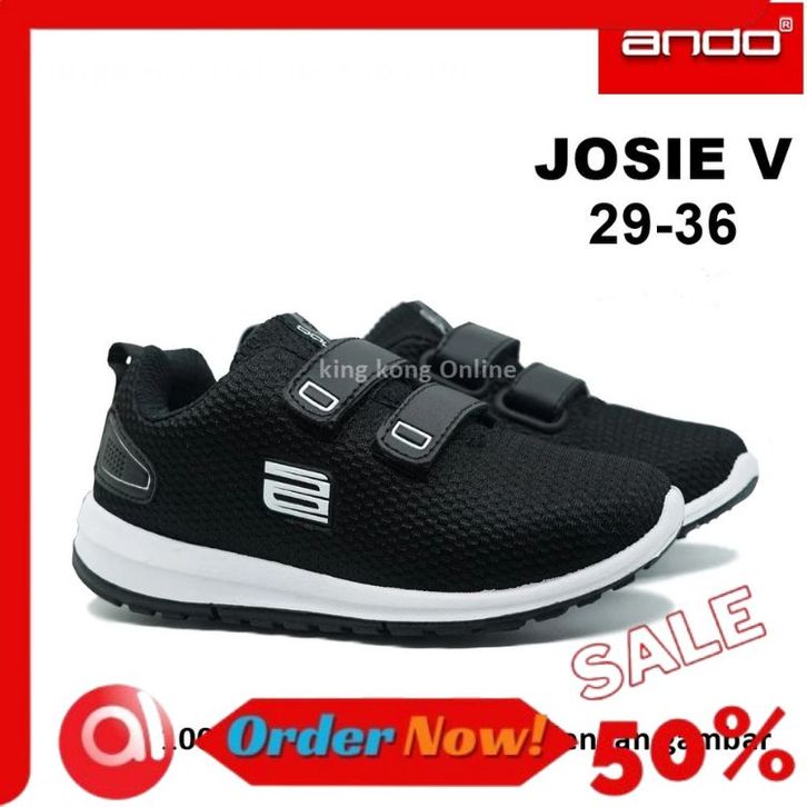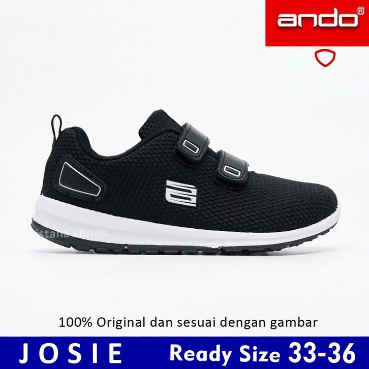 SEPATU ANAK SEKOLAH PEREMPUAN LAKI LAKI ORIGINAL ANDO HITAM PUTIH PAUD TK SD PEREKAT