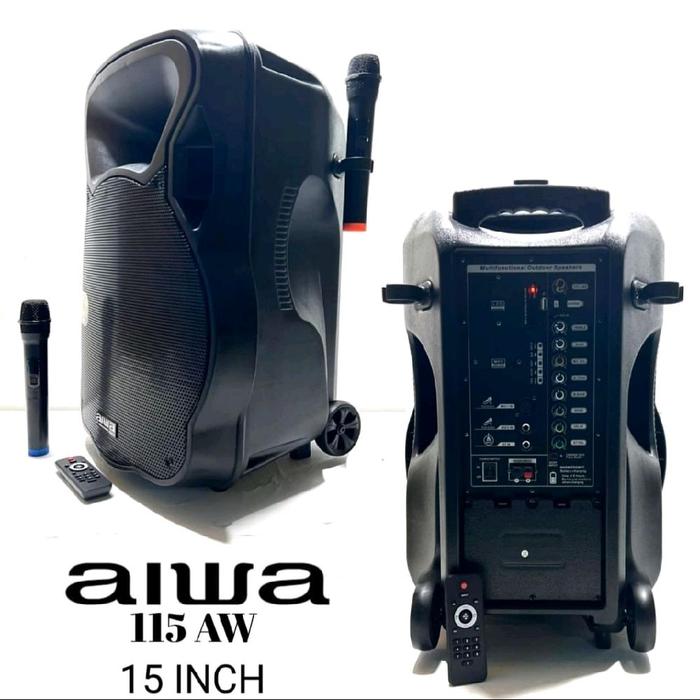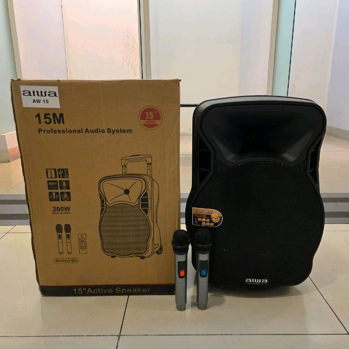 Salon Speaker Portable 15 inch Aiwa AW15 | AW 15 Bluetooth USB MP3 2Mic Wireless Karaoke
