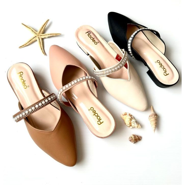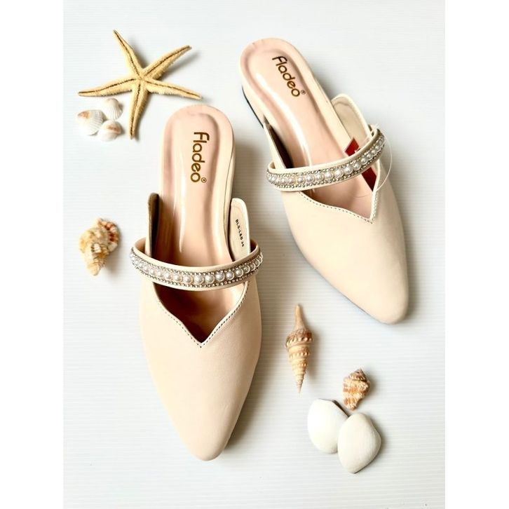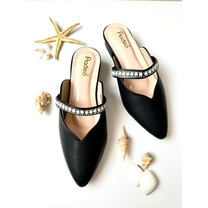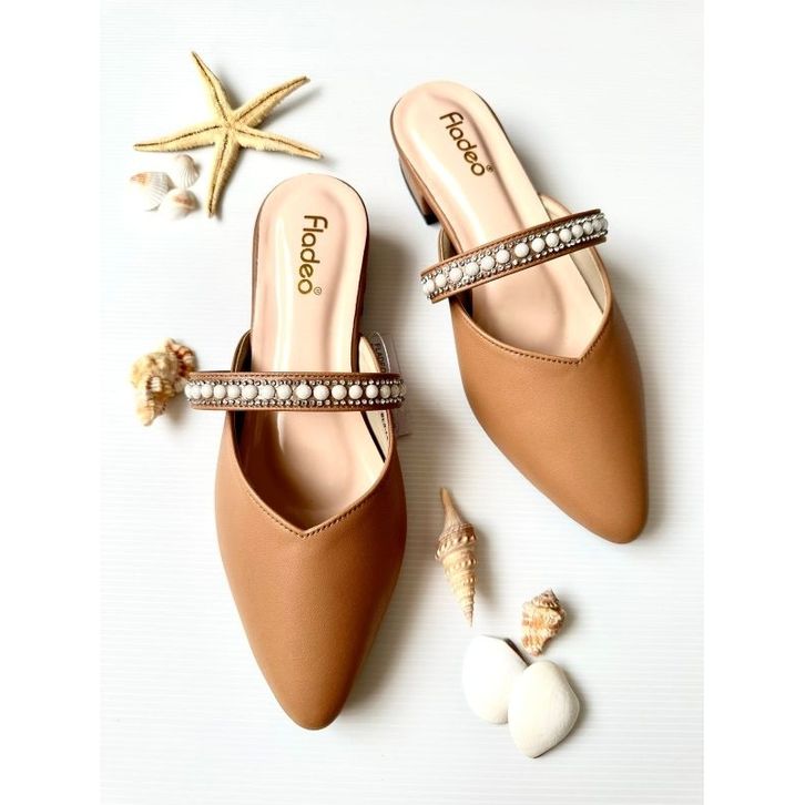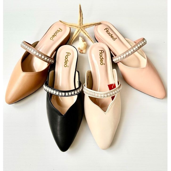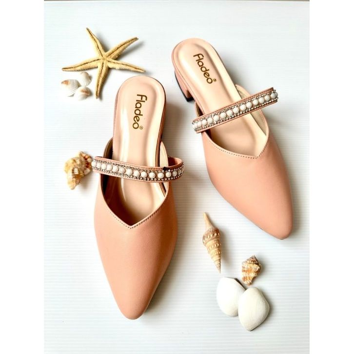 BEBAS ONGKIR Sandal Mules Fladeo Slop Hak 3cm ( fladeo Mutiara ) Sepatu Slop Trendy Ukuran 37 38 39 40 41