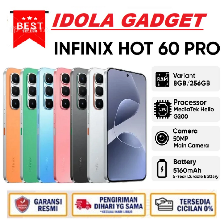 (GRATIS ONGKIR) Hp INFINIX HOT 60 PRO RAM 8+256GB | Mediatek Helio G200 | Camera 50MP | Batery 5160mAh