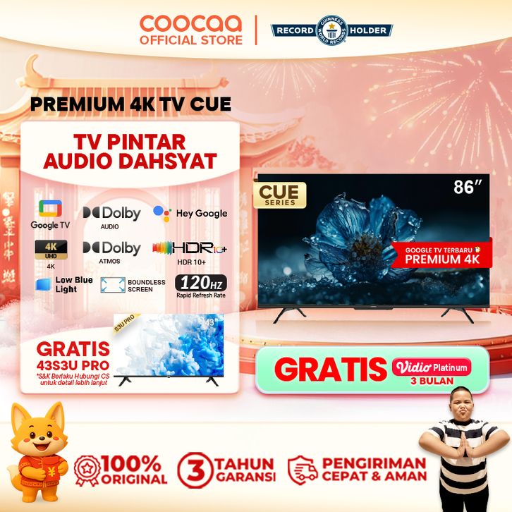 [NEW] [Google TV] COOCAA TV 86 inch - Smart Digital TV - Netflix Youtube - Google Assistant - Dolby Audio (86CUE7600)