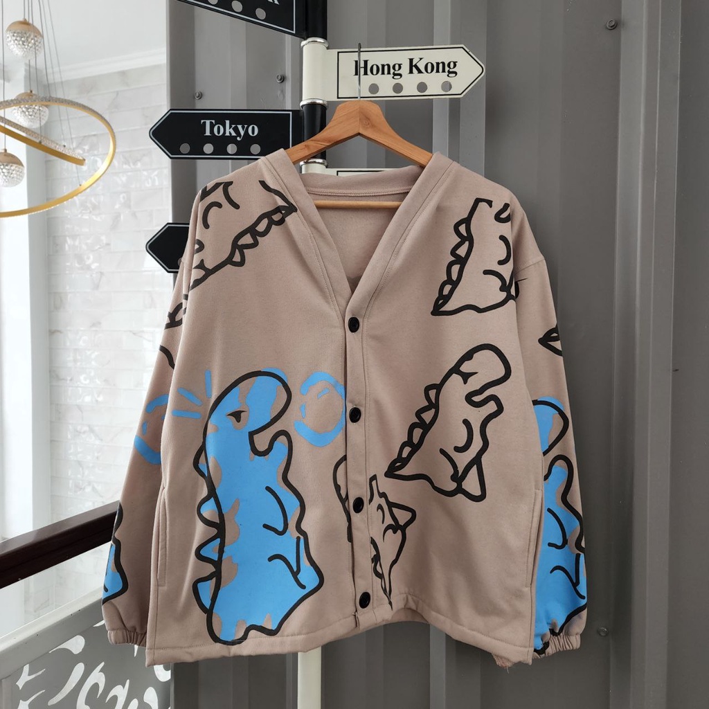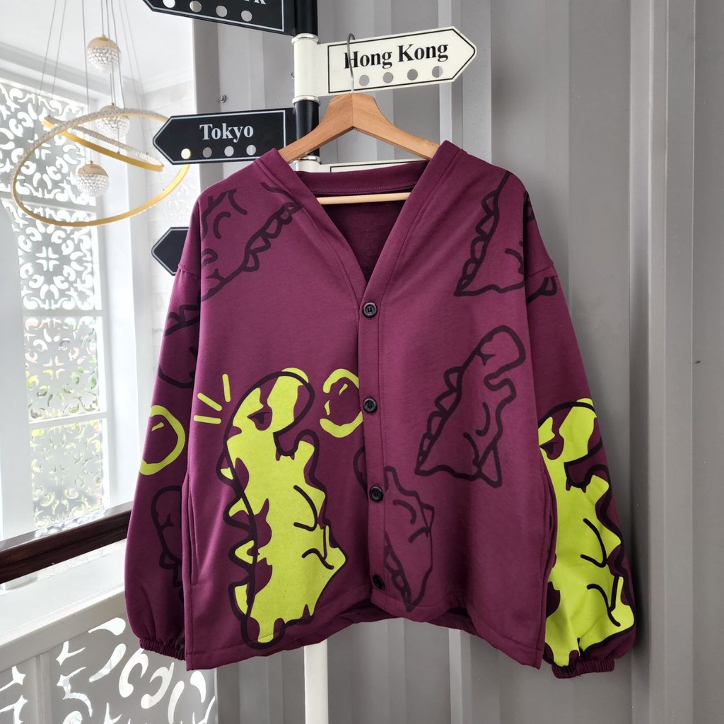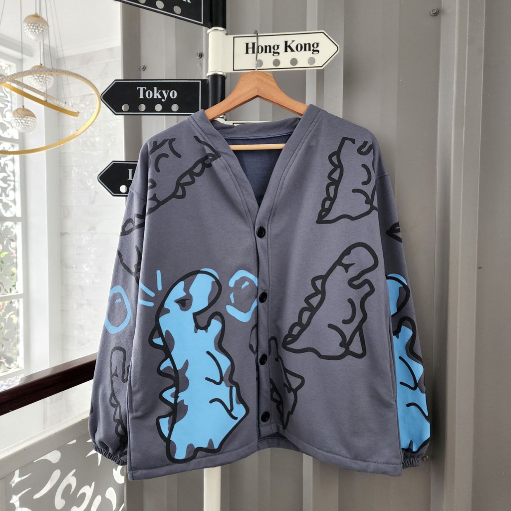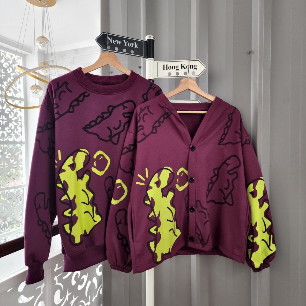 JAKET CARDIGAN PASANGAN CRAYON DINO / JAKET PASANGAN PACAR WARNA LUCU IMUT / JAKET COUPLE SAHABAT