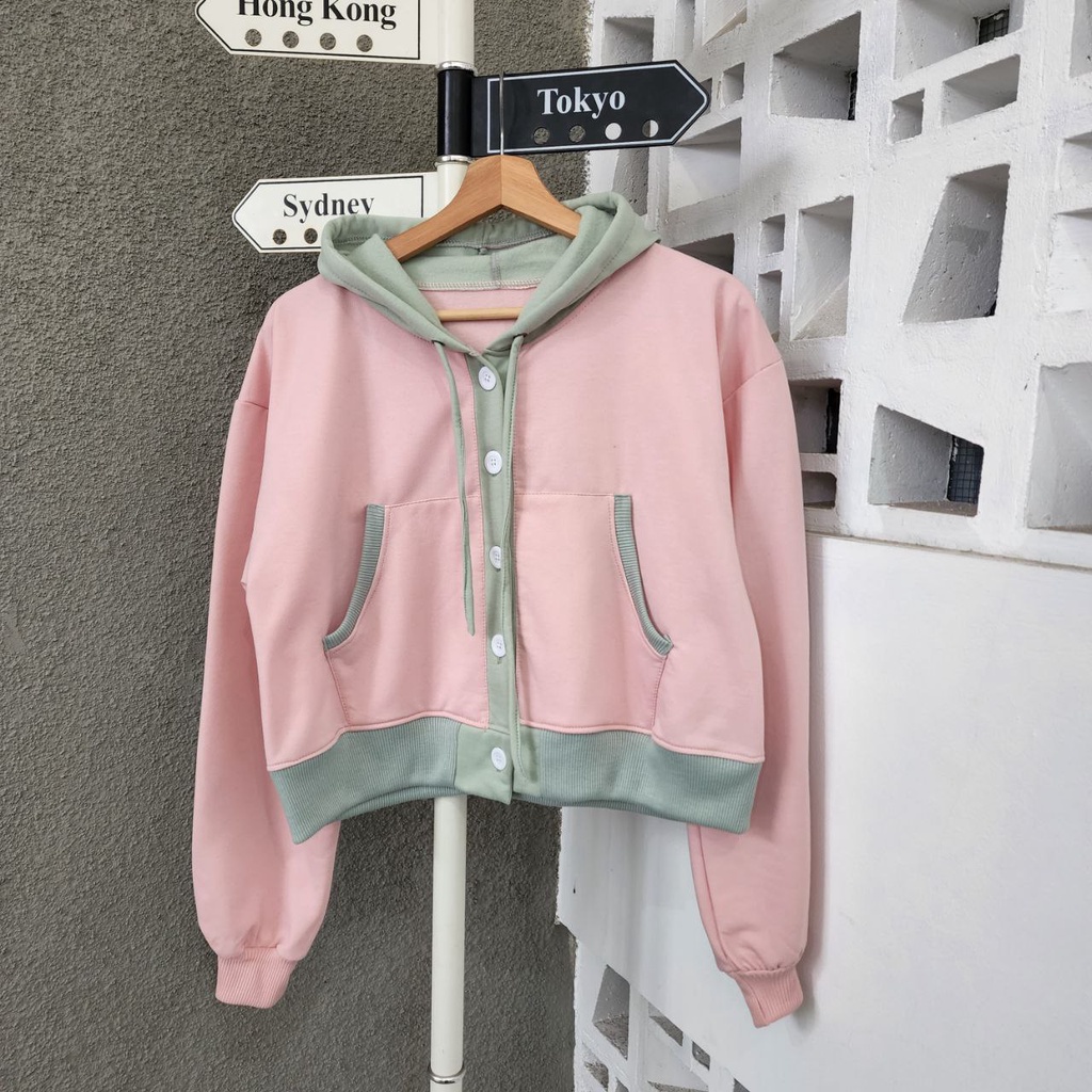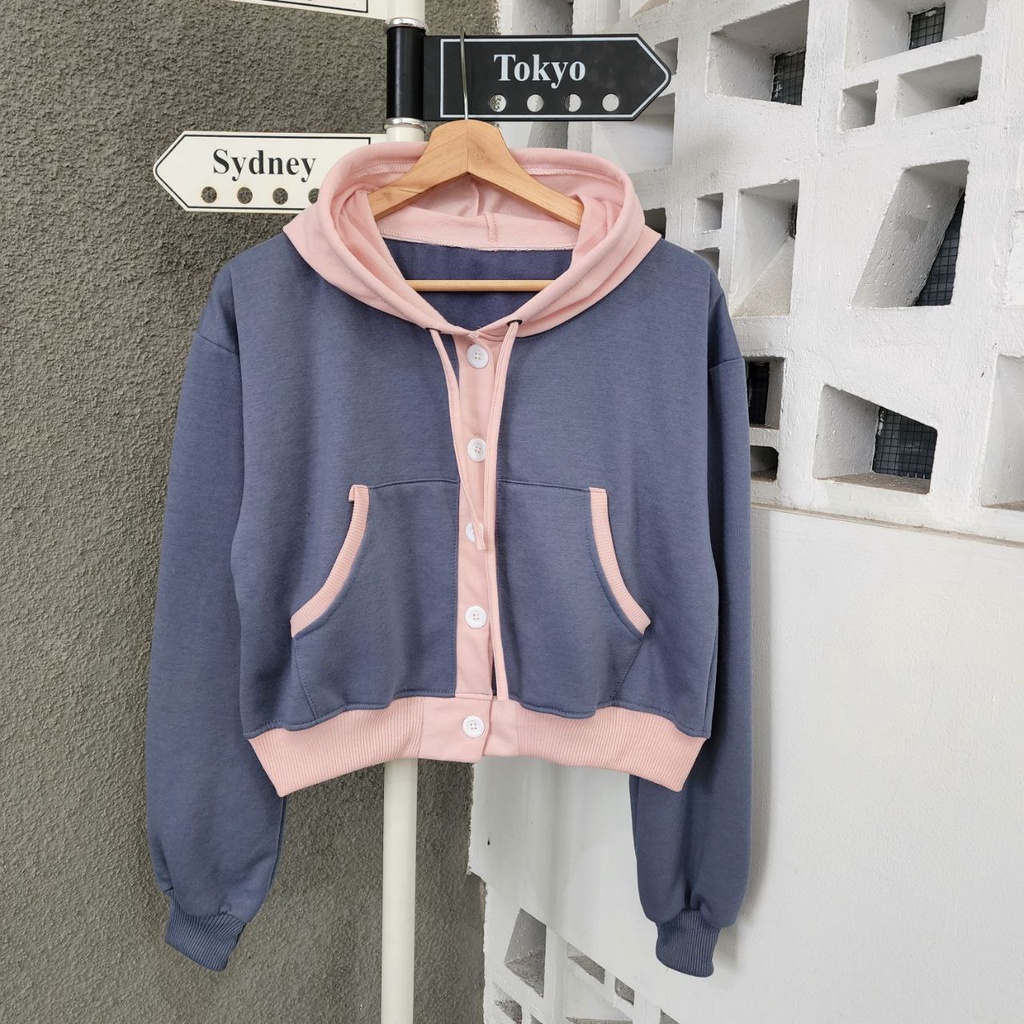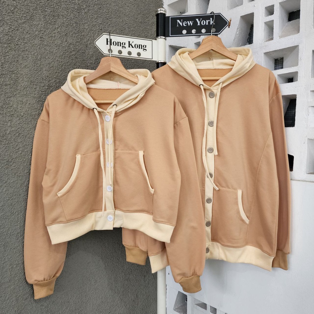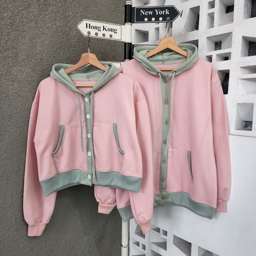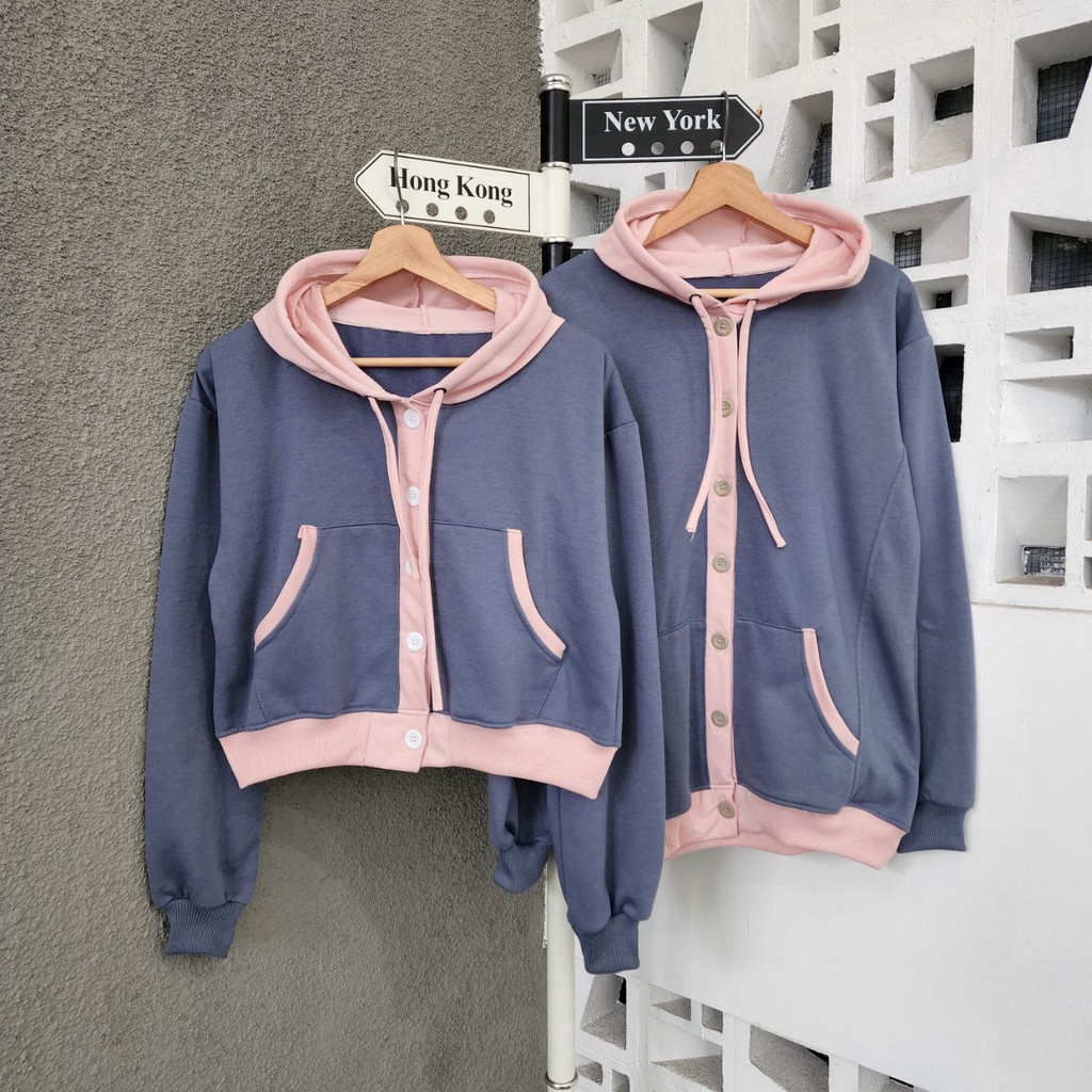 JAKET SWEATER CROP NIO BUTTON COUPLE / JAKET PASANGAN PACAR WARNA LUCU IMUT / JAKET COUPLE SAHABAT