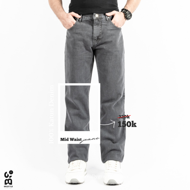 Celana Jeans Reguler Grey Retro Basic Denim Celana Standar Gizmo