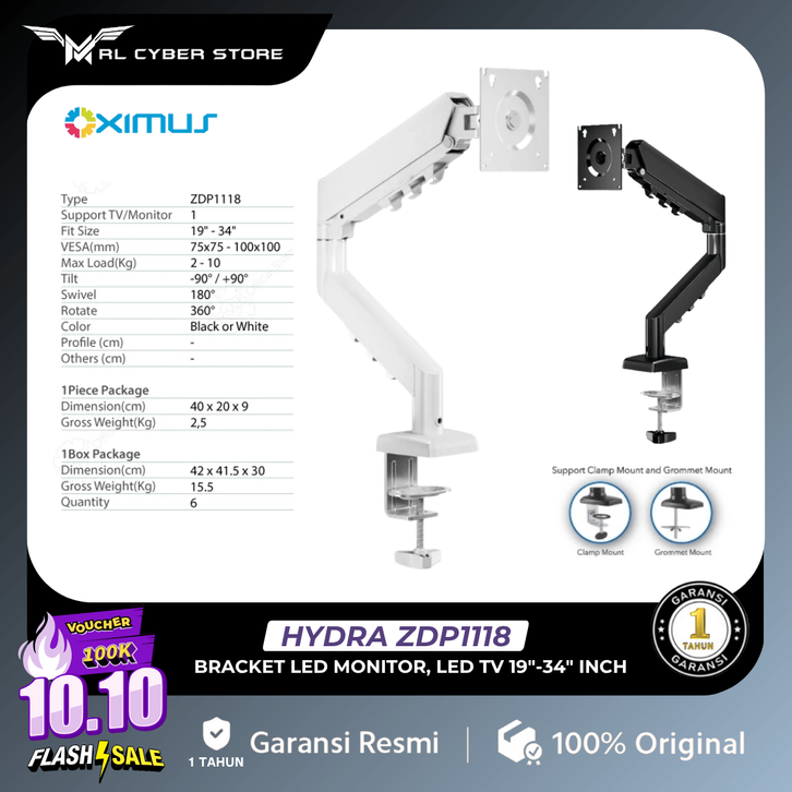 [Star]BRACKET MONITOR/TV LED LCD Oximus HYDRA ZDP1118 - Desk Mount Bracket LED Monitor 19-34 Inch - GRATIS ONGKIR