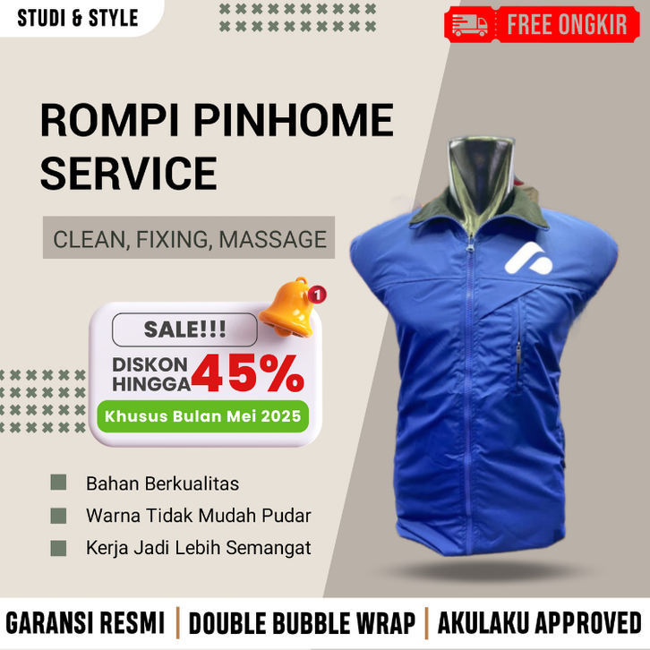 Rompi Pinhome Home Service Clean Auto Fixing Massage Outer Luaran Seragam Kerja Tanpa Lengan Bahan Parasut Puring Cantik
