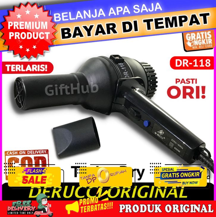 CICILAN/BARU+ DERUCCI HAIRDRYER DR-118 DR 118 PANAS DINGIN ORIGINAL PENGERING RAMBUT DERRUCI DE RUCCI TURBODRY