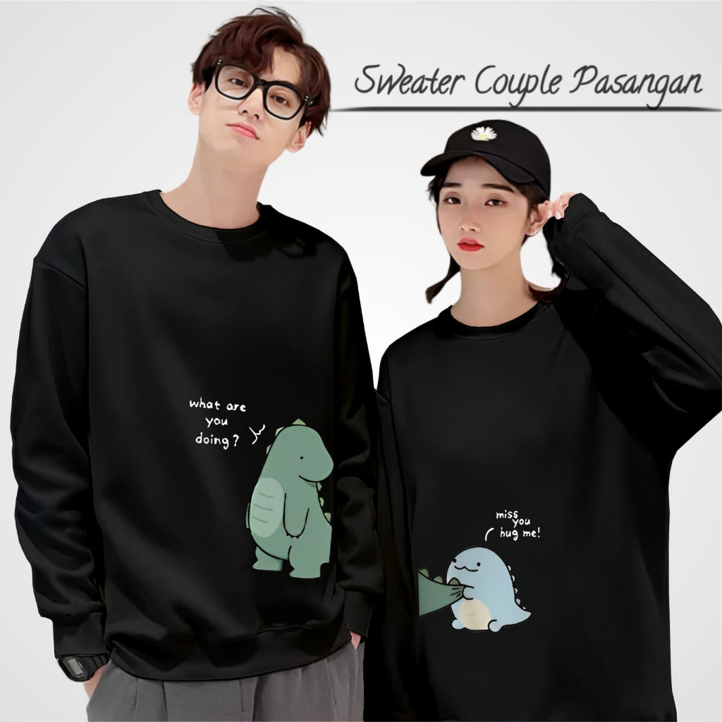 BAJU KAOS COUPLE PASANGAN PACAR DINO LENGAN PANJANG DISTRO MODEL SWEATER TERLARIS VIRAL KEKINIAN