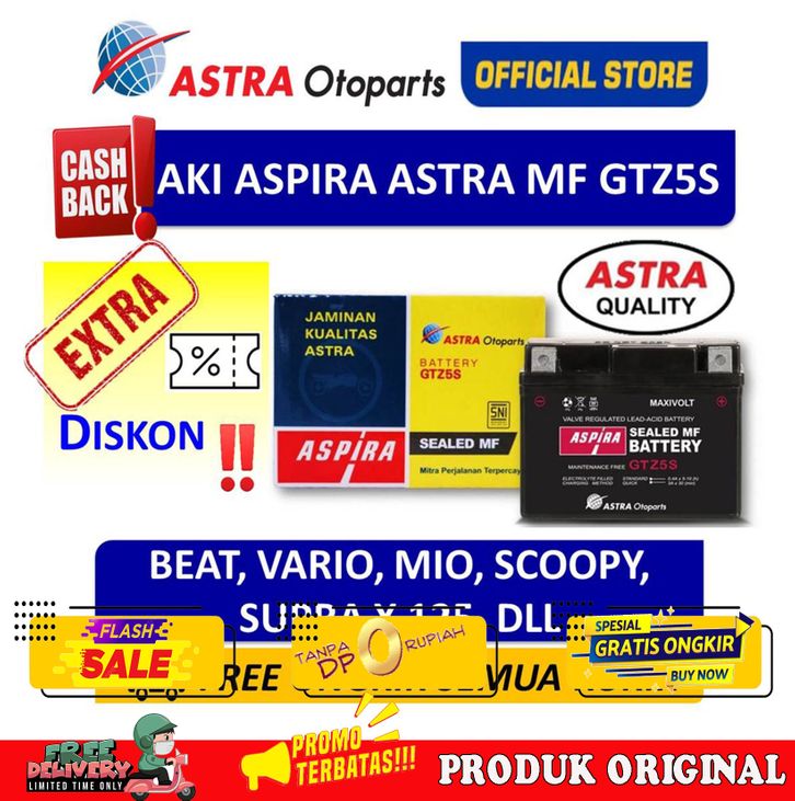 DISKON/AKI MOTOR ASPIRA GTZ5S MF BEAT VARIO MIO SCOOPY 11-GTZ-5SMF