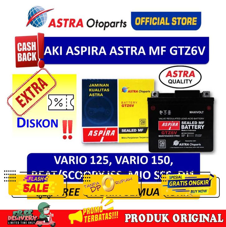 DISKON/AKI ASPIRA ASTRA GTZ6V MF 5 AH MOTOR VARIO 125 VARIO 150 BEAT ISS SCOOPY ISS MIO SSS 11-GTZ-6VMF