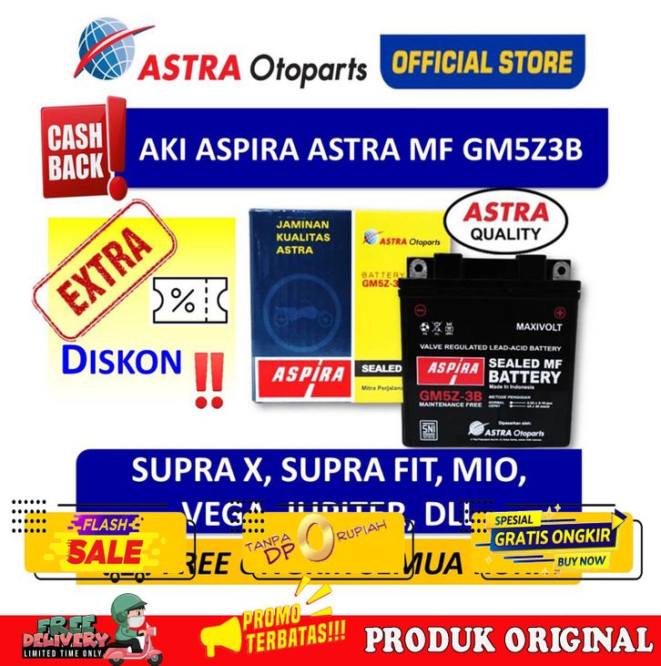 DISKON/AKI ASPIRA GM5Z3B MF(5 AH)-AKI MOTOR SUPRA,MIO,JUPITER Z,TORNADO,VEGA (11-GM5Z-3BMF)
