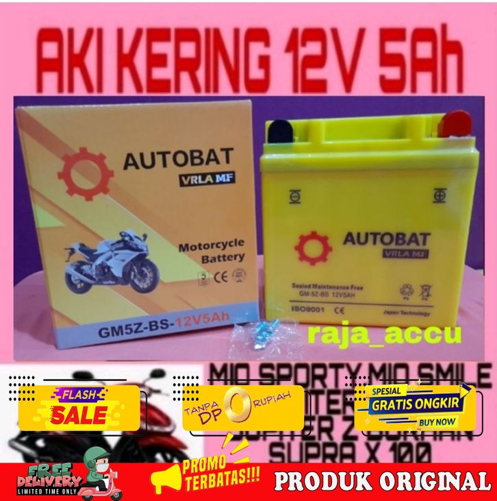 AKI MOTOR MIO SPORTY, MIO SMILE, JUPITER Z LAMA JUPITER BURHAN, JUPITER MX LAMA,VEGA,MEGA PRO,AUTOBAT YB5L/GM5Z 12V5AH
