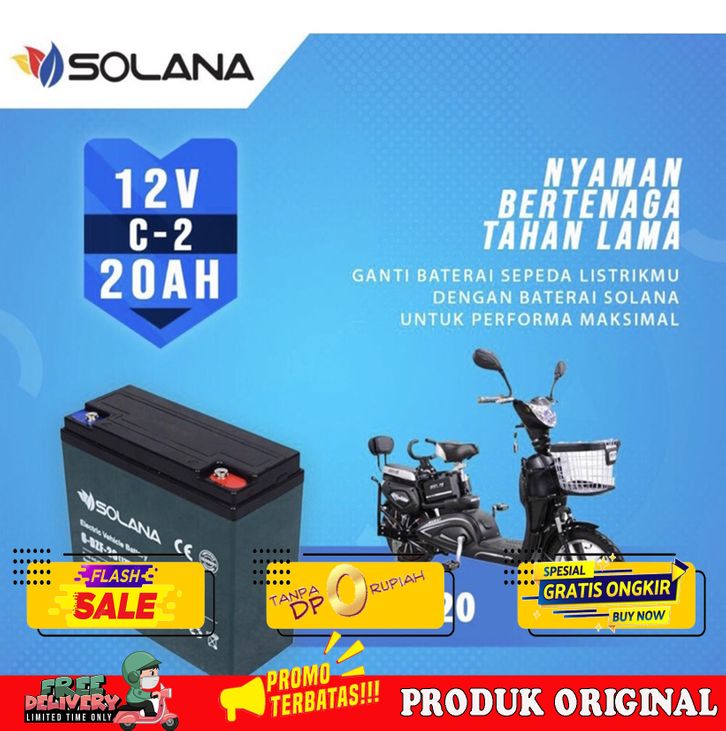 DISKON/SOLANA / BATERAI / AKI MOTOR LISTRIK 6DZF20 12V 20AH