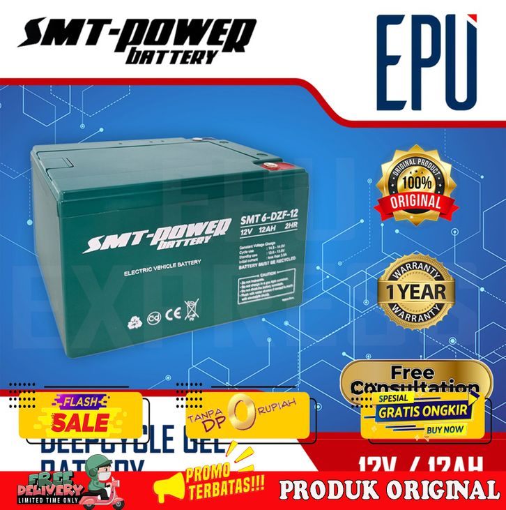 DISKON/SMT POWER SMT AKI SELIS 12V 12AH AKI SEPEDA LISTRIK AKI MOTOR LISTRIK SKUTER DEEP CYCLE VRLA