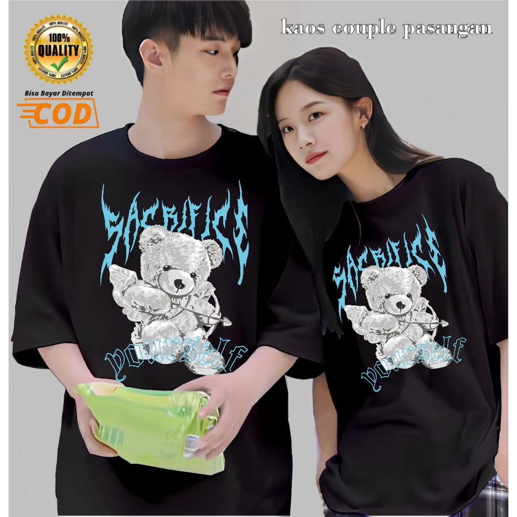 BAJU KAOS COUPLE PASANGAN BEAR AESTUETIC PRIA WANITA DEWASA KATUN COMBED 30S LENGAN PENDEK BIG SIZE