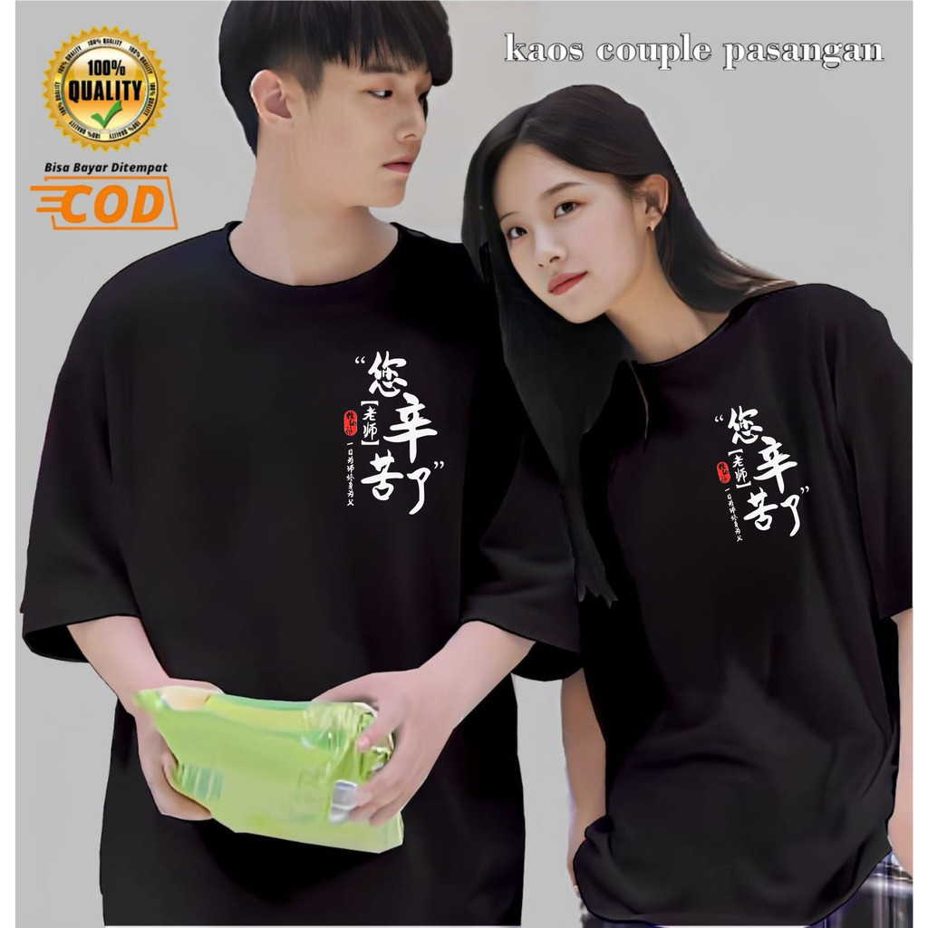 BAJU KAOS DISTRO COUPLE PACAR PRIA WANITA TULISAN KANJI DEWASA LENGAN PENDEK KATUN
