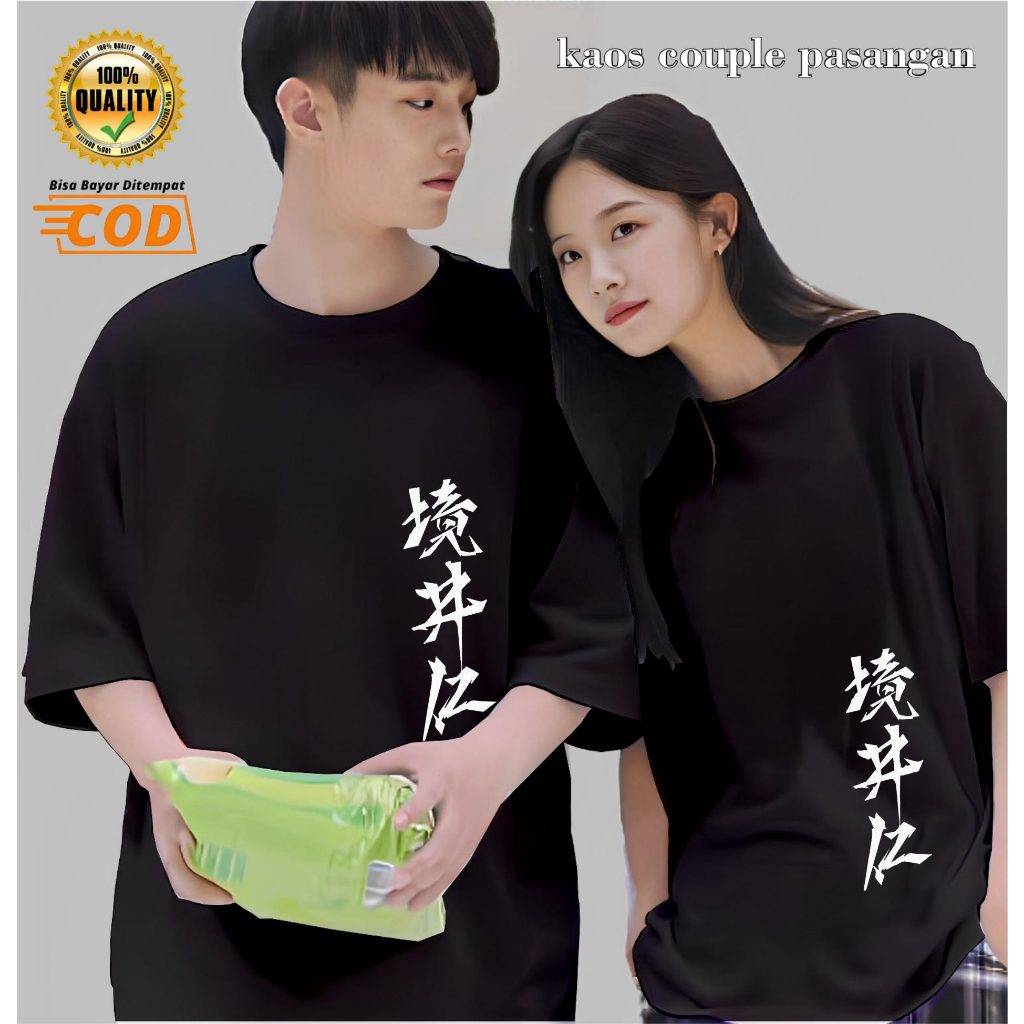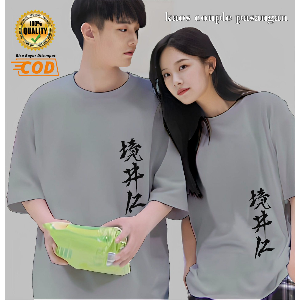 BAJU KAOS COUPLE PASANGAN PACAR DISTRO TULISAN KANJI PRIA WANITA LOVE BAHAN KATUN TEBAL 30S