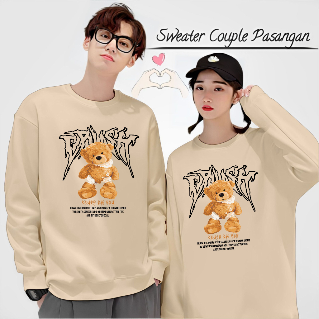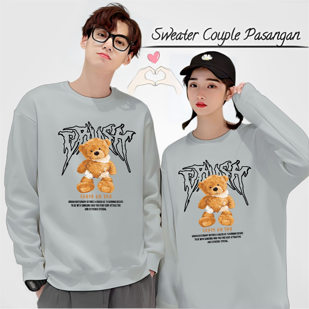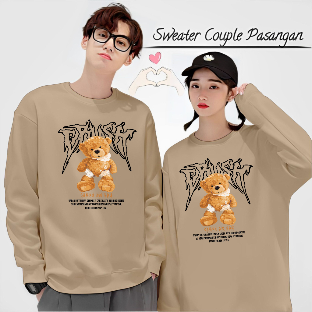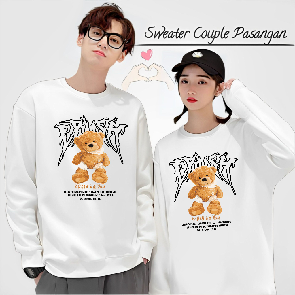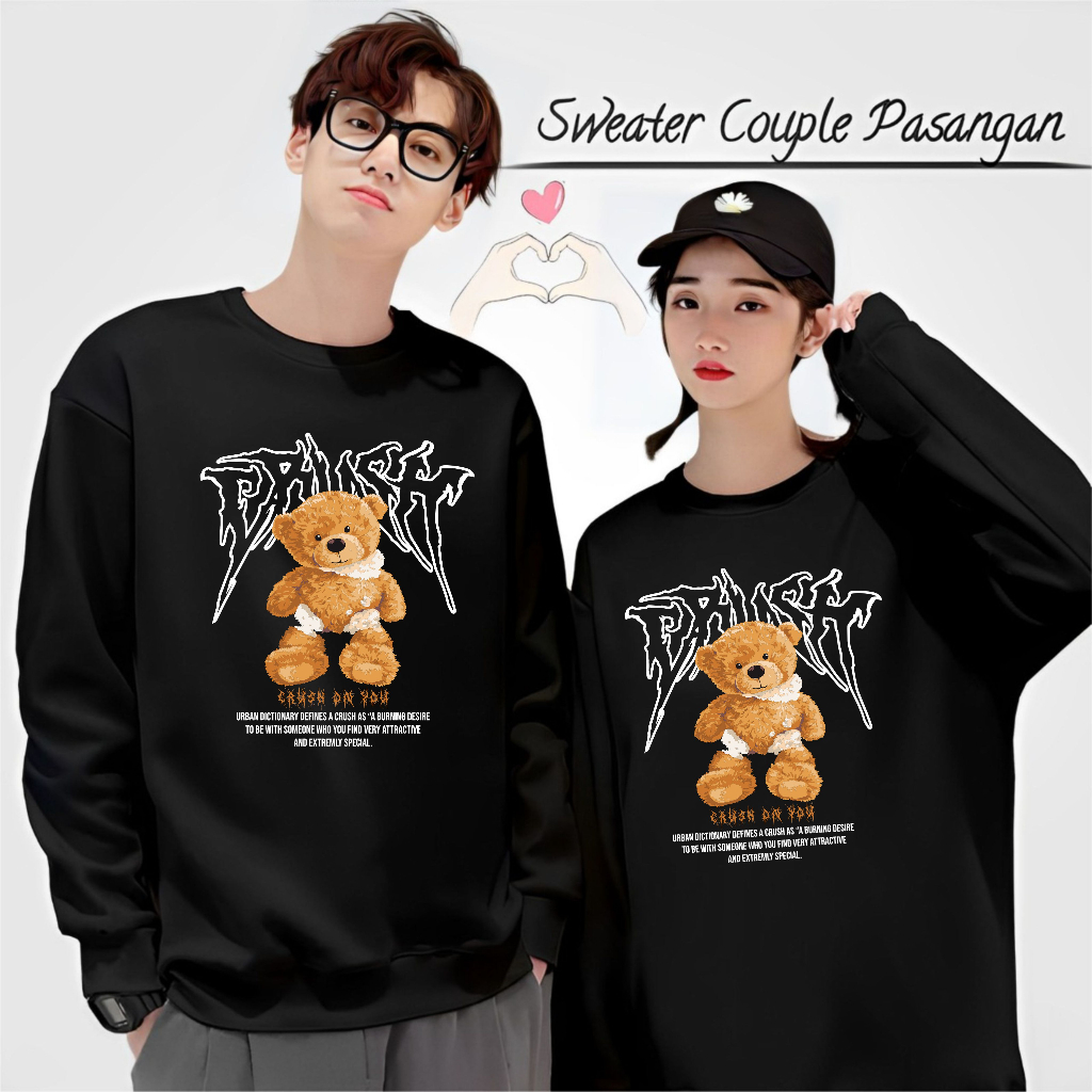 BAJU KAOS COUPLE PASANGAN PACAR BEAR CRUSH LENGAN PANJANG DISTRO MODEL SWEATER TERLARIS VIRAL