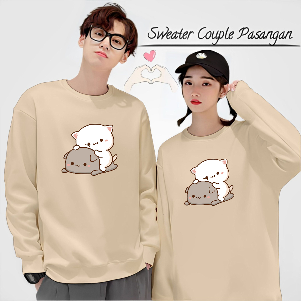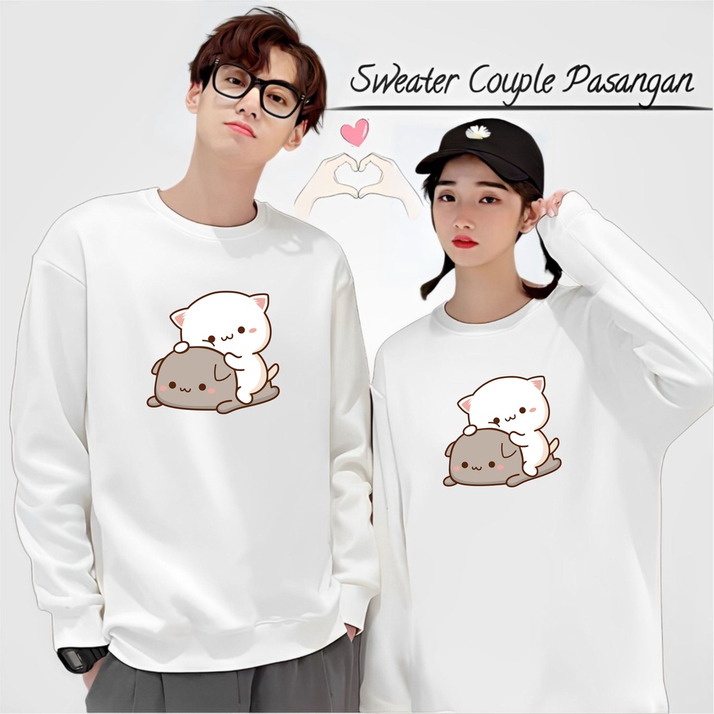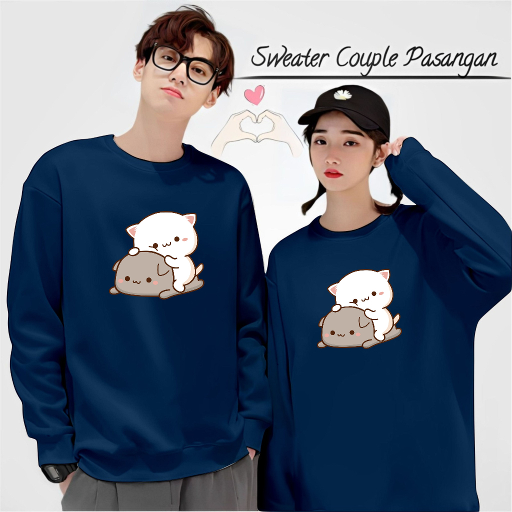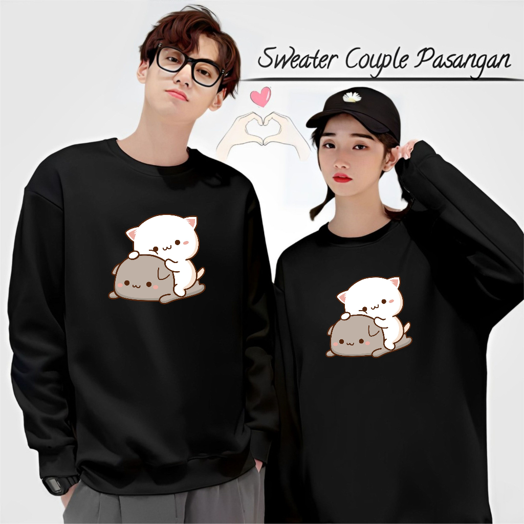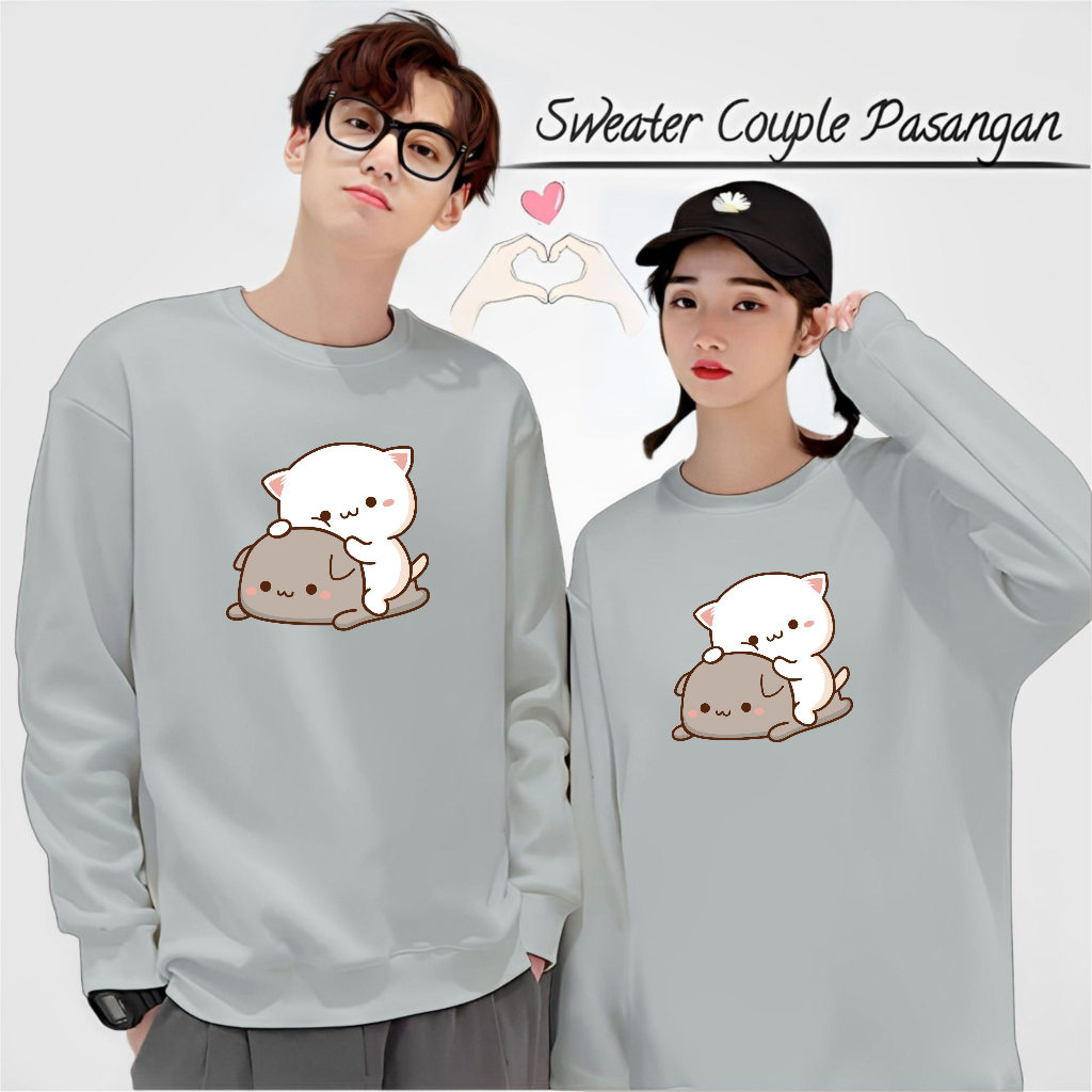 BAJU KAOS COUPLE PASANGAN PACAR DISTRO KUCING COUPLE TRENDY LENGAN PANJANG MODEL SWEATER TERLARIS