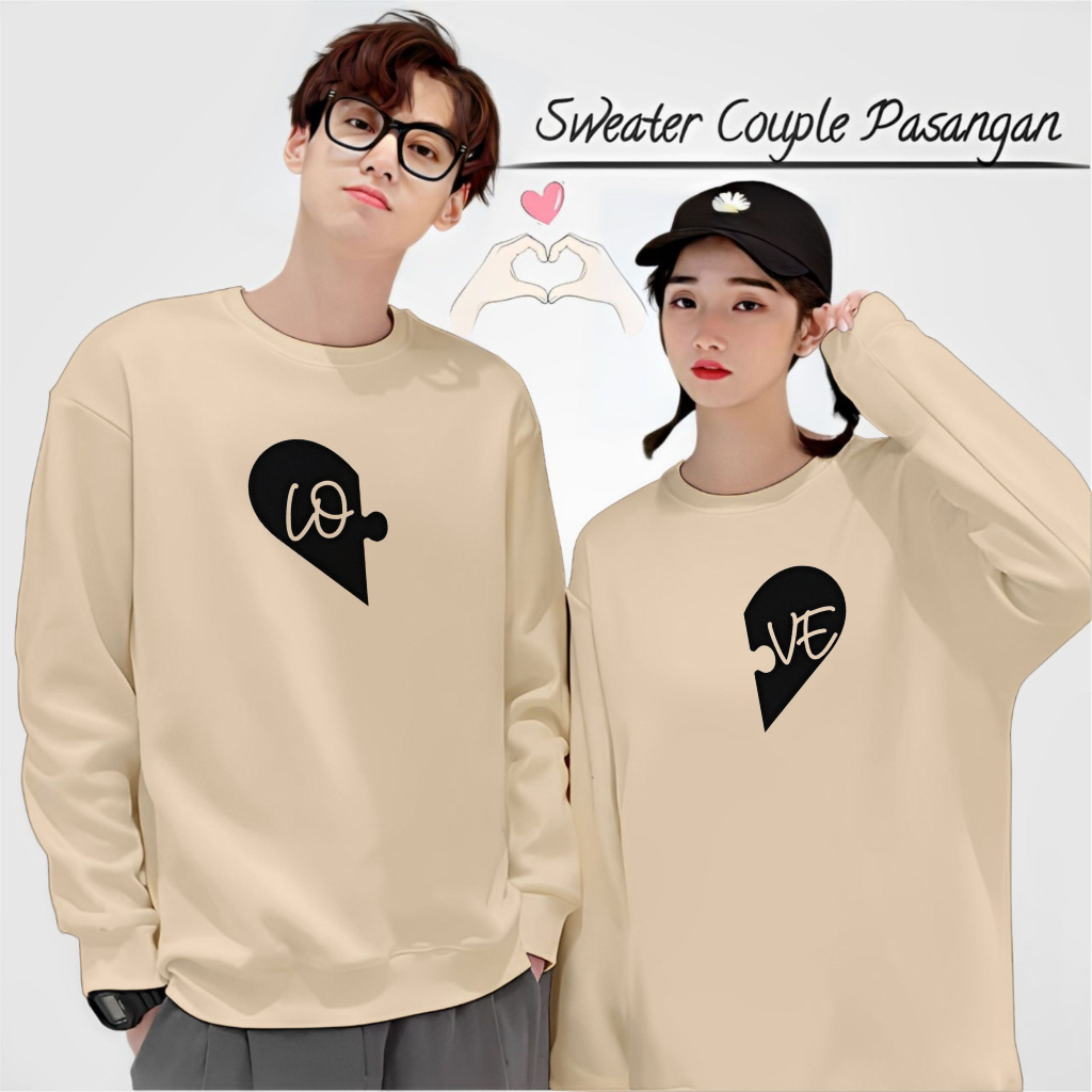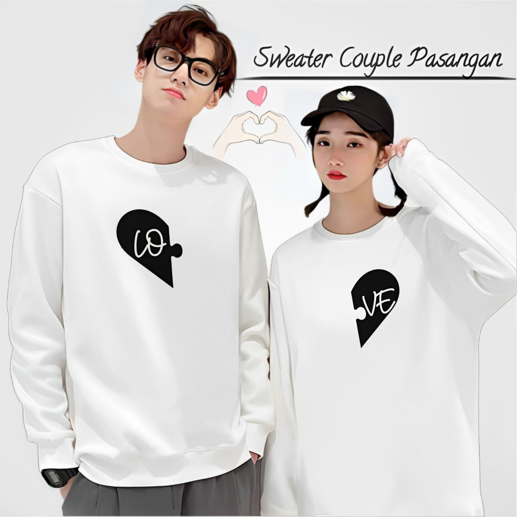 BAJU KAOS COUPLE PASANGAN PACAR DISTRO LOVE PUZZLE TRENDY LENGAN PANJANG MODEL SWEATER TERLARIS