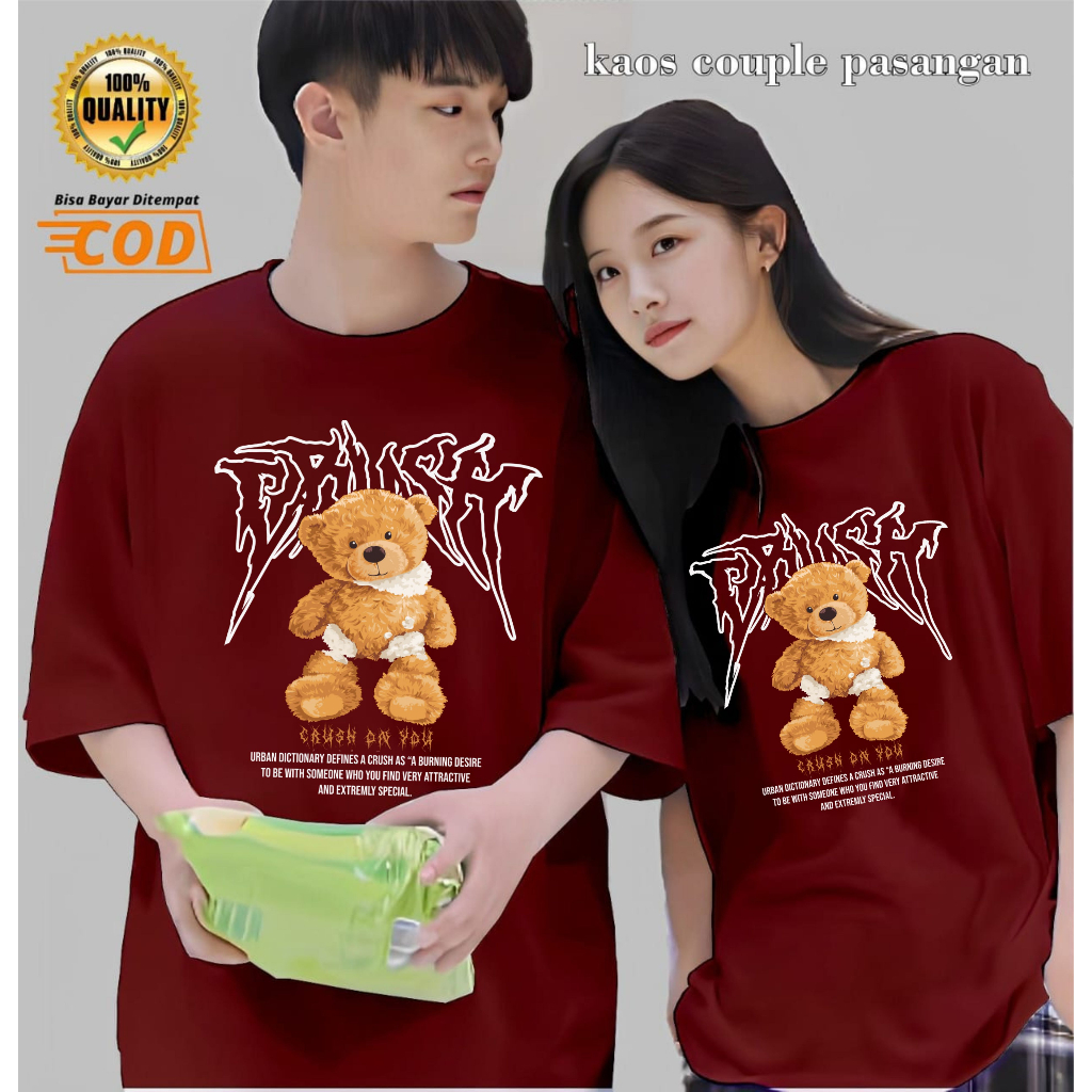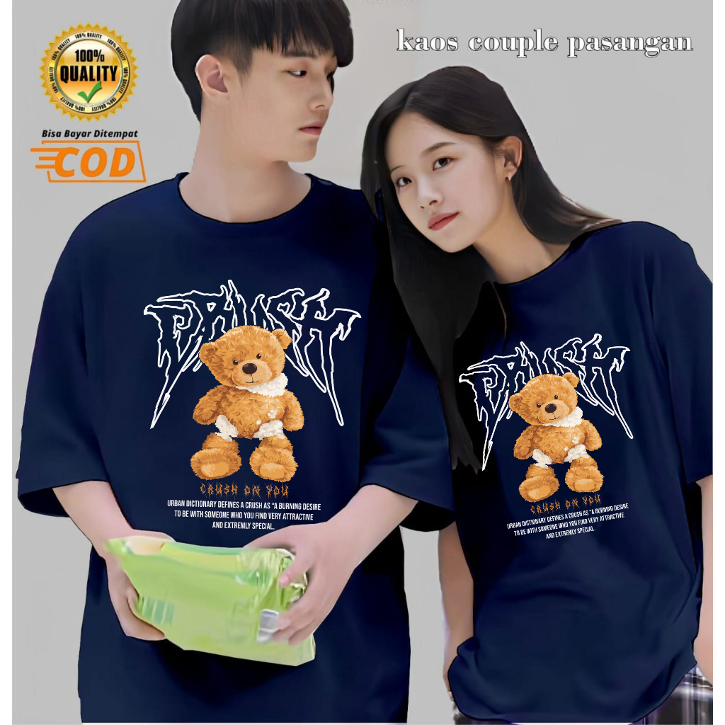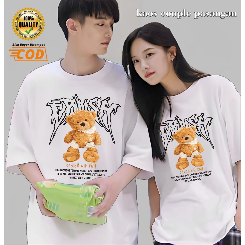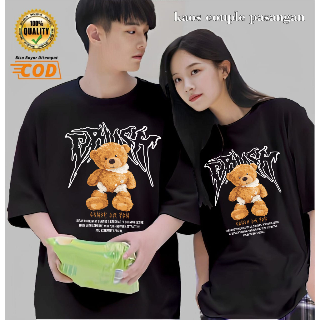 BAJU KAOS DISTRO COUPLE PASANGAN PACAR BEAR CRUSH PRIA WANITA KATUN PREMIUM 30S LENGAN PENDEK