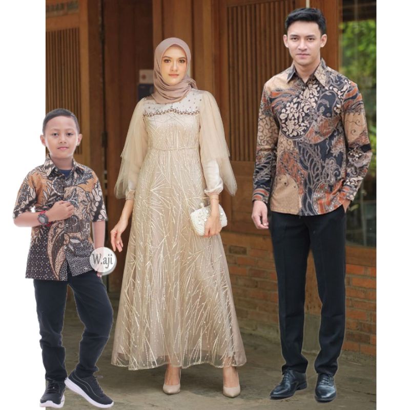 BATIK COUPLE DRES GAMIS MUSLIM SYARI BAHAN BRUKAT TILLE MUTIARA PREMIUM PESTA DISTRO ORGINIAL MURAH