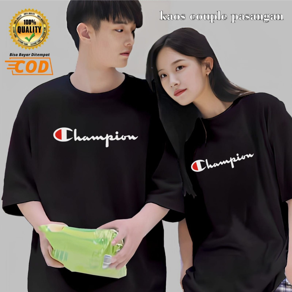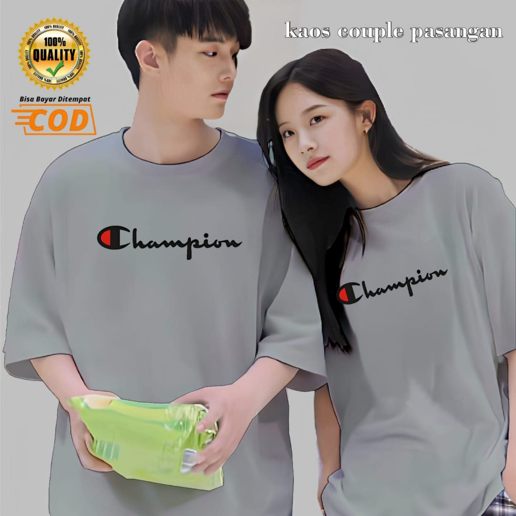 BAJU KAOS COUPLE PASANGAN PACAR DISTRO CHAMPION PRIA WANITA BAHAN KATUN TEBAL 30S