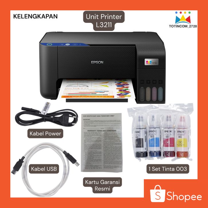 {PROMO} Epson L3211 Printer F4 dengan Scanner A4 bisa Fotokopi Tinta 4 buah Original Garansi Resmi