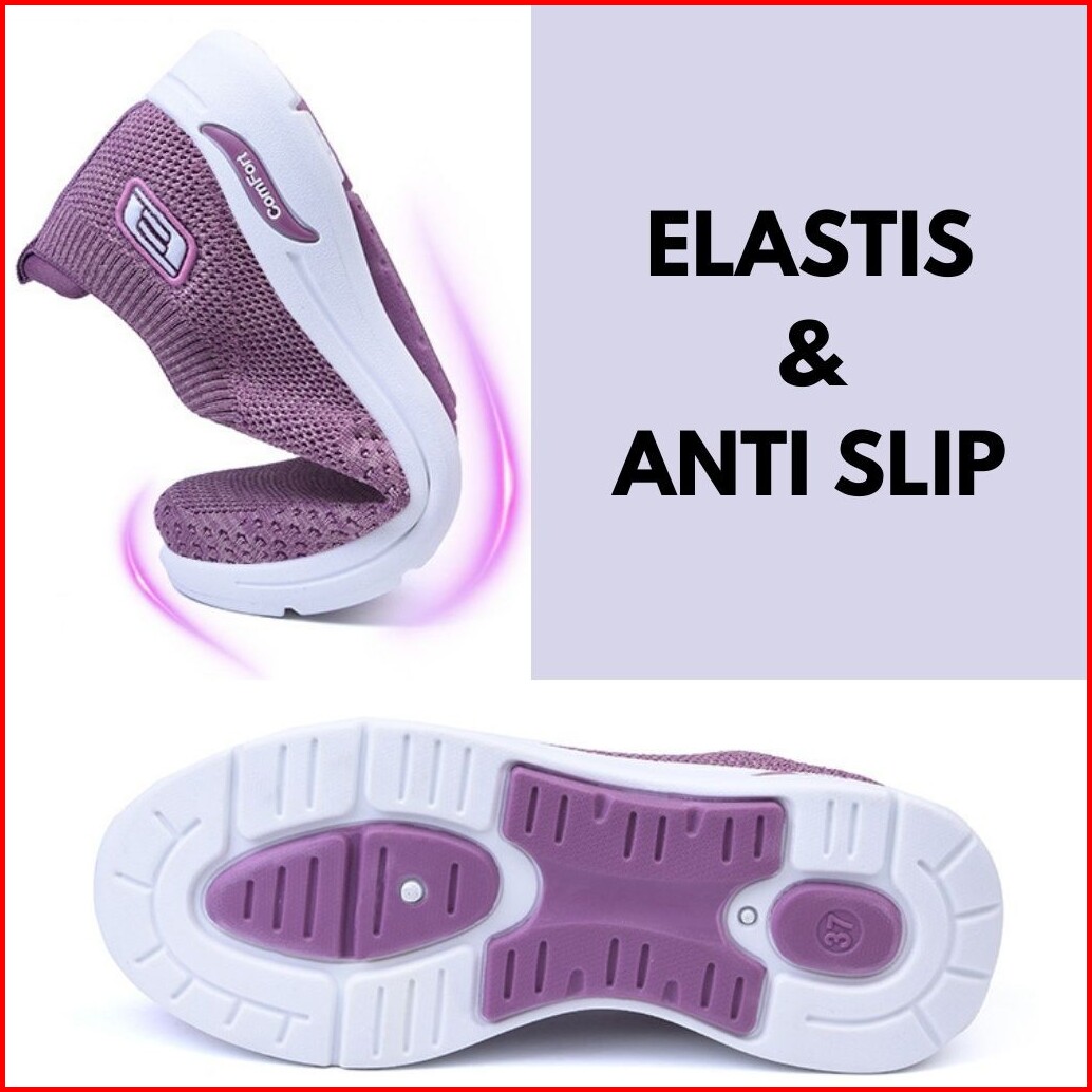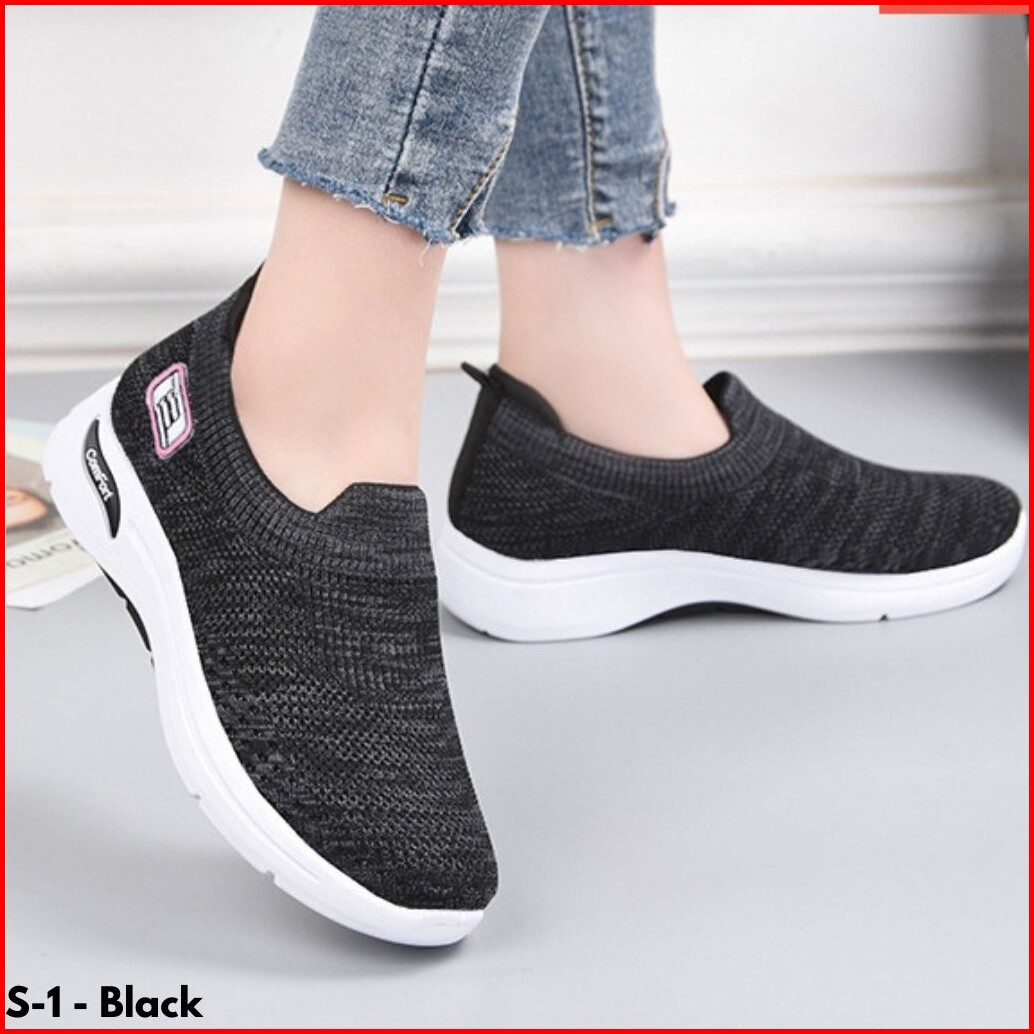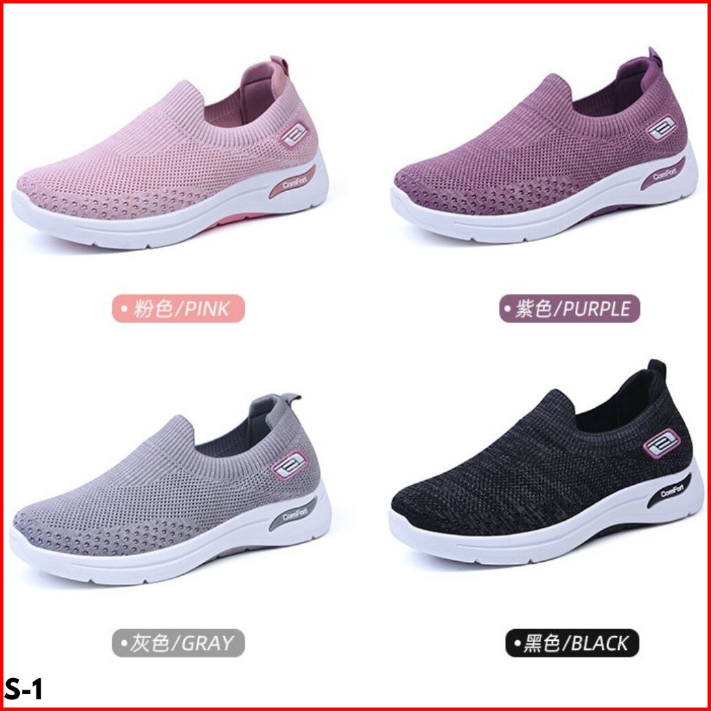 Sepatu Sneakers Wanita Casual Nyaman Olahraga Elastis Anti Slip Sole Karet Import Lari S1 Tua Muda