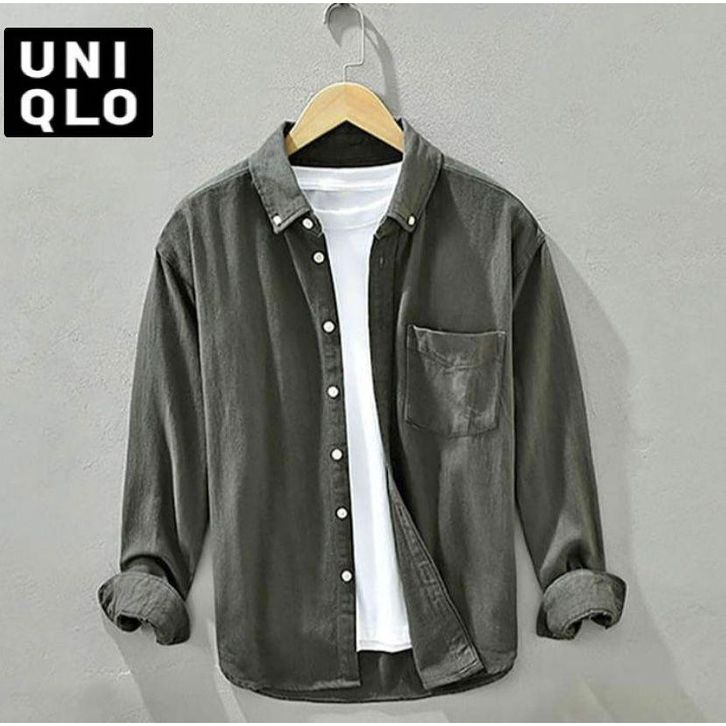 KEMEJA PRIA UNIQLO TERBARU KEMEJA CASUAL TRENDY KEMEJA POLOS LENGAN PANJANG KEKINIAN KEMEJA PRIA TERLARIS