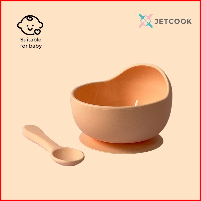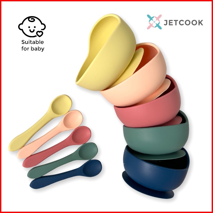 Jetcook Mangkuk Silikon Suction Set Dengan Sendok Mpasi Bayi Anti Pecah Anti Slip