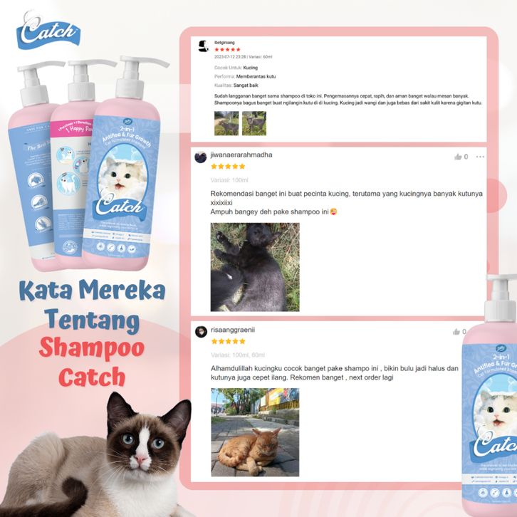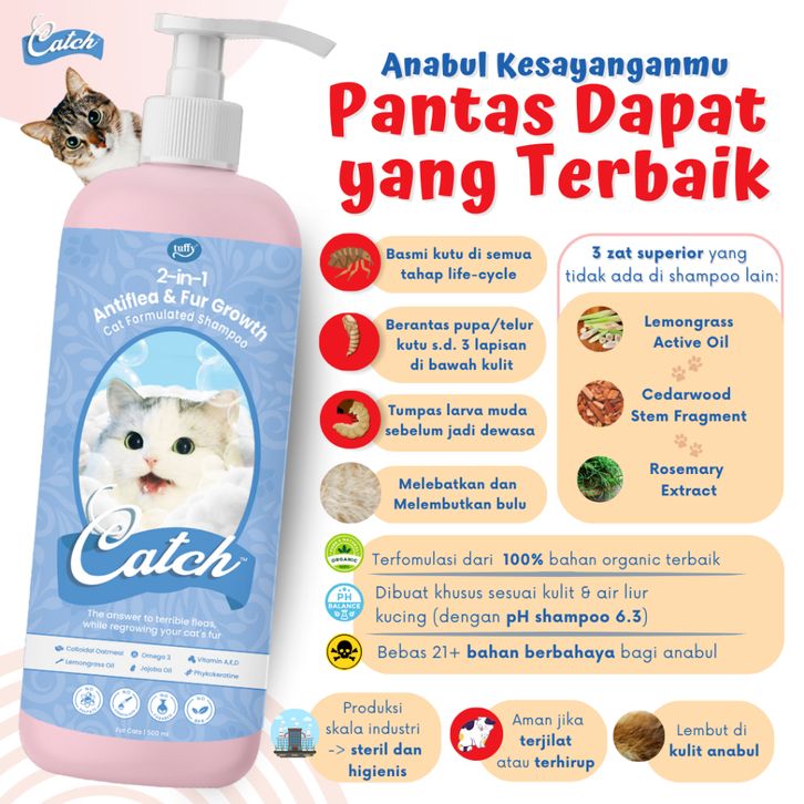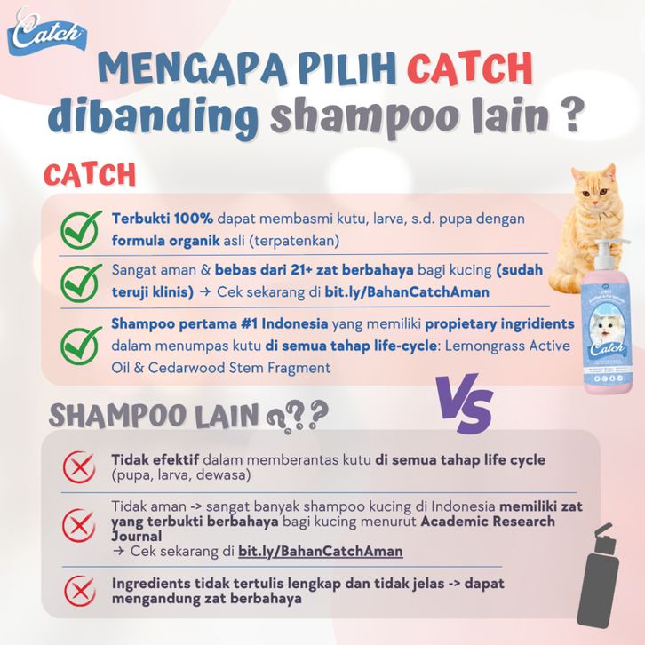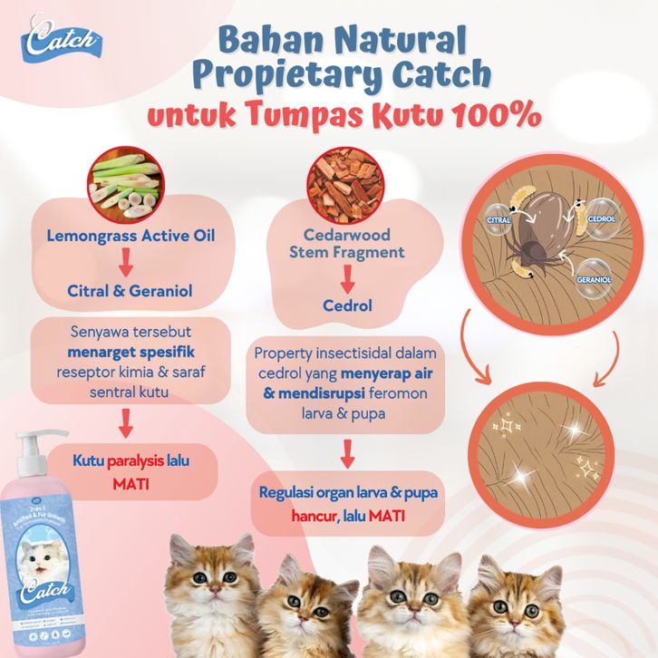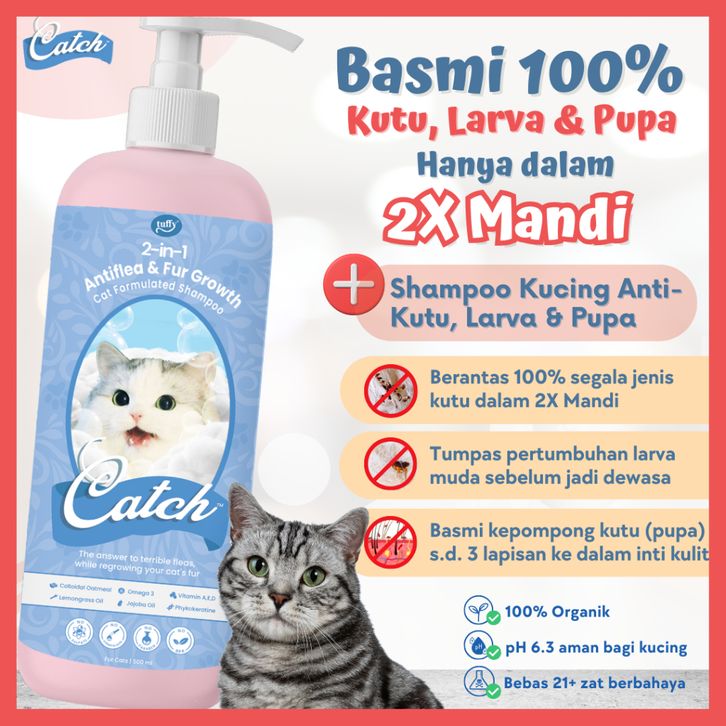 FREE ONGKIR Catch - Shampoo Kucing Anti Kutu , Larva, dan Pupa - Cukup 2x Mandi, Kutu Hilang 100% Tanpa Balik Lagi