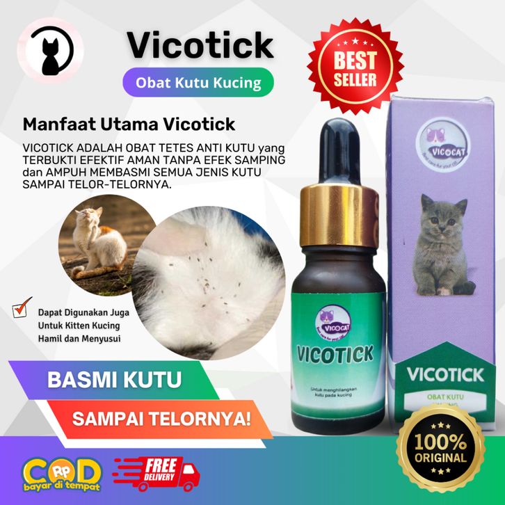 FREE ONGKIR obat kutu kucing VICOTICK basmi kutu kucing sampai telor kutu aman untuk kitten dan ampuh bersihkan ketombe