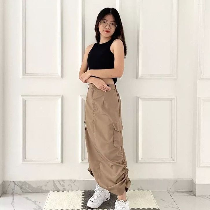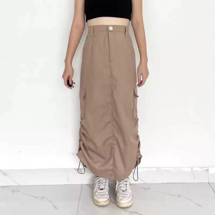 Rok Cargo Wanita Serut Kekinian Cargo Shirt Standart & Jumbo Best Seller