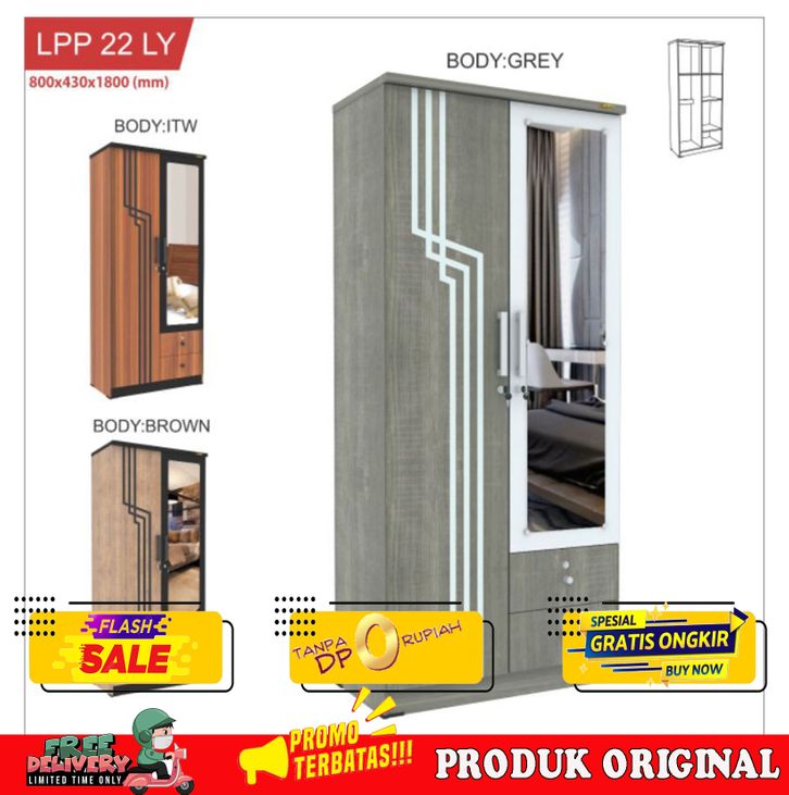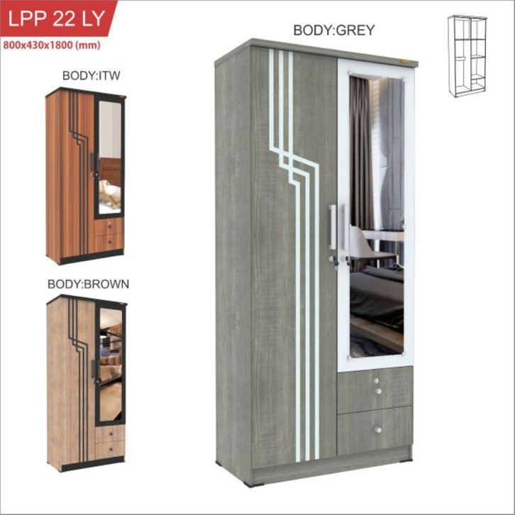 CICILAN/BARU+ TERMURAH LEMARI BAJU 2 PINTU 2 LACI FULL PUTIH KACA PANJANG - BANDUNG AREA SAJA