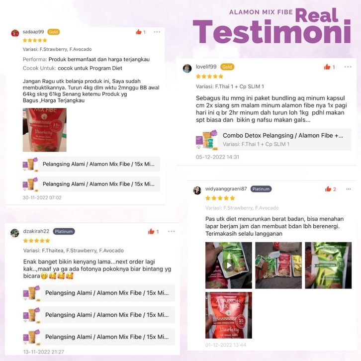 Pelangsing Alami / Alamon Mix Fibe / 15x Minum / Kombinasi 6 Fiber Detox Obat Diet Penurun Berat Badan Ampun BPOM