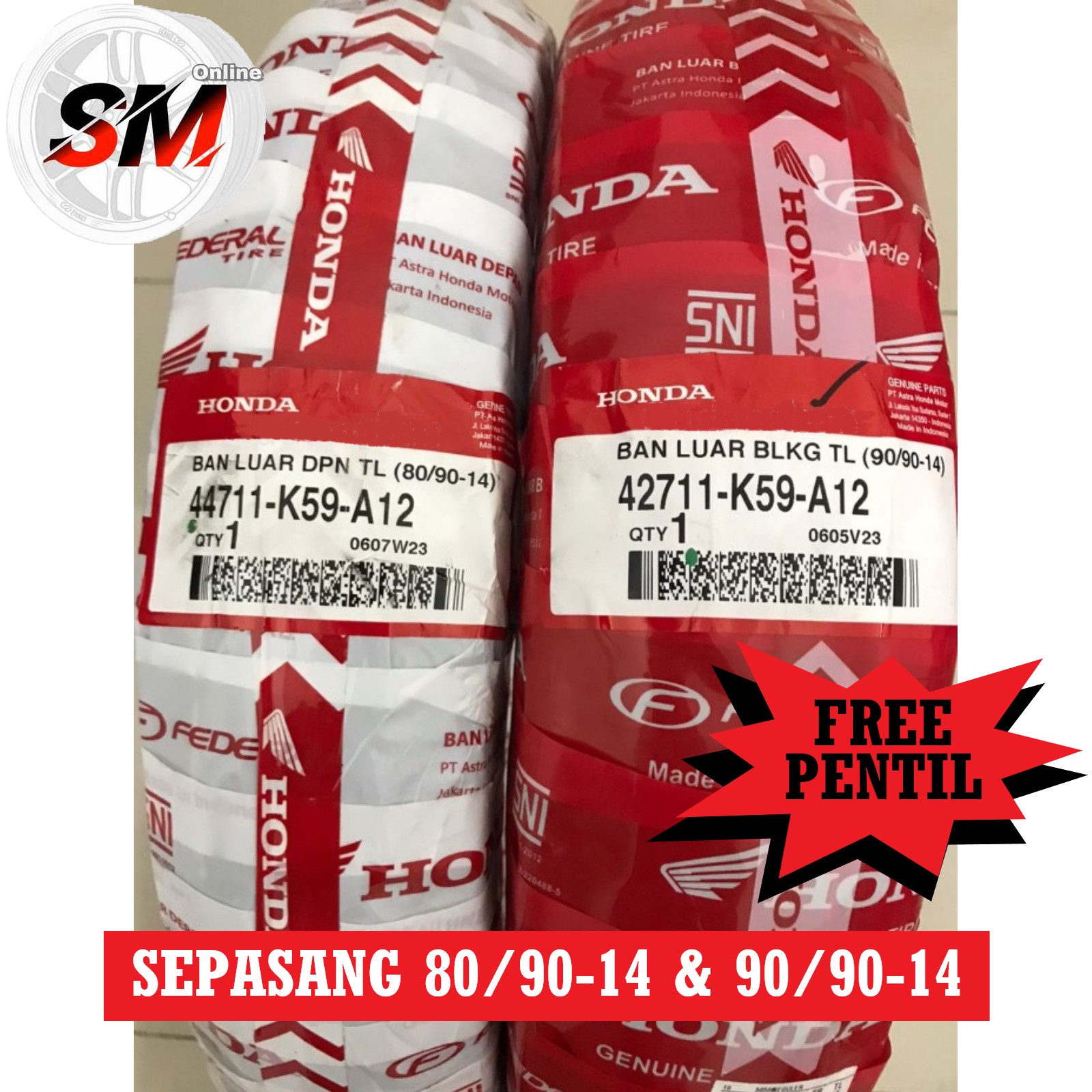 PAKET BAN LUAR AHM FEDERAL 80/90-14 & 90/90-14 ASLI HONDA BAN MOTOR MATIC TUBELESS