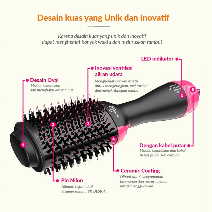 YK DESIGN ONE STEP BRUSH HAIRDRYER & STYLER (SISIR PENGERING,PELURUS&CURLY RAMBUT ELEKTRIK 4IN1)YK-163 TERBARU TERLARIS