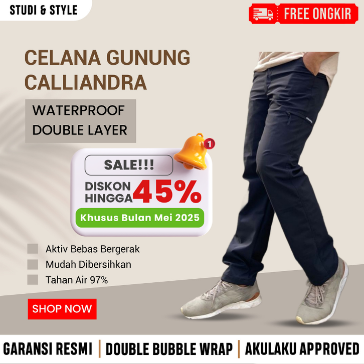 Celana Gunung Cowokk Wanita Calliandra Waterproof Double Layer Panjang Hiking Outdoor Camping Pendaki Anti Air Quick Dry