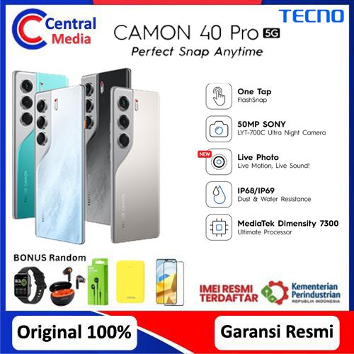 [ OFFICIAL STORE✔️ ] Tecno Camon 40 PRO 5G NFC 256GB 16GB Camon 40 256GB 128GB 16GB Garansi Resmi 12 Bulan