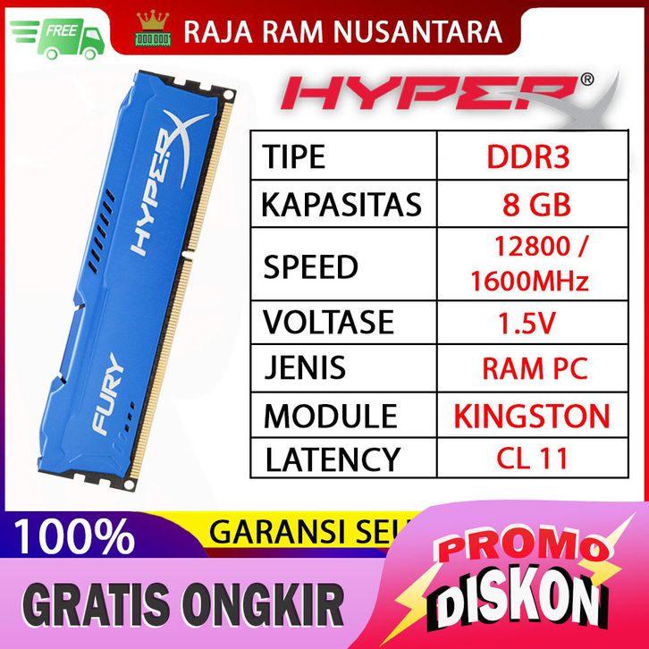 CICILAN/BARU+ RAM KINGSTON HYPERX FURY GAMING DDR3 8GB 1600MHZ 12800 RAM PC DDR3 8GB