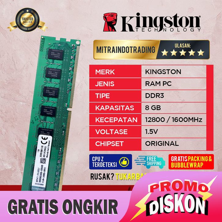 CICILAN/BARU+ RAM KINGSTON LONGDIMM DDR3 8GB PC12800 BERGARANSI