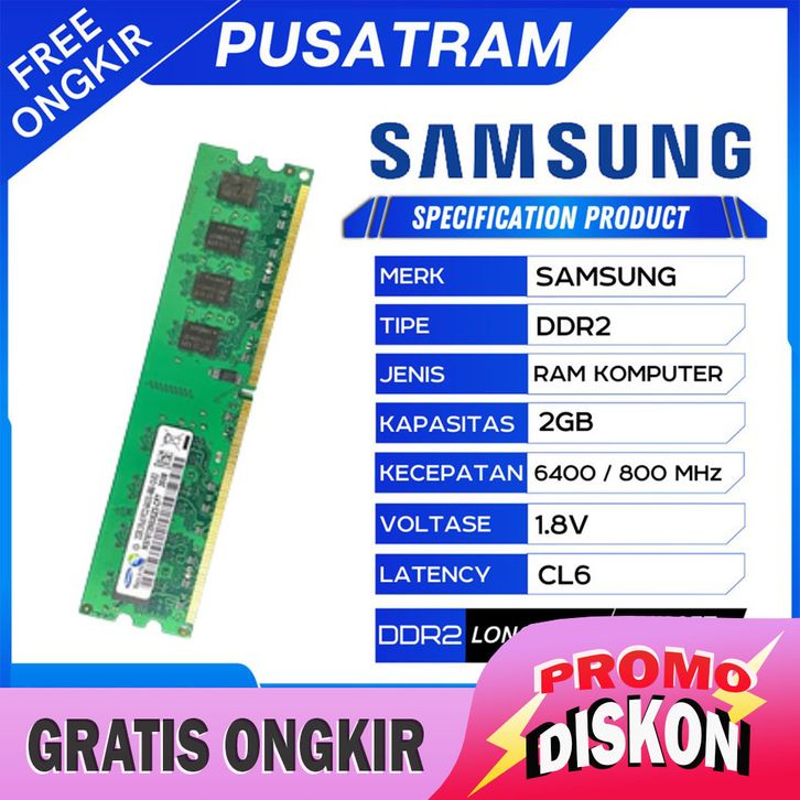 CICILAN/BARU+ RAM PC SAMSUNG DDR2 2GB 6400/800MHZ ORIGINAL RAM KOMPUTER 1.8V 2GB