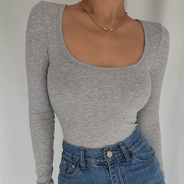 [Premium] Summer Solid Basic Square Neck Long Sleeve Top 7139 S/M/L