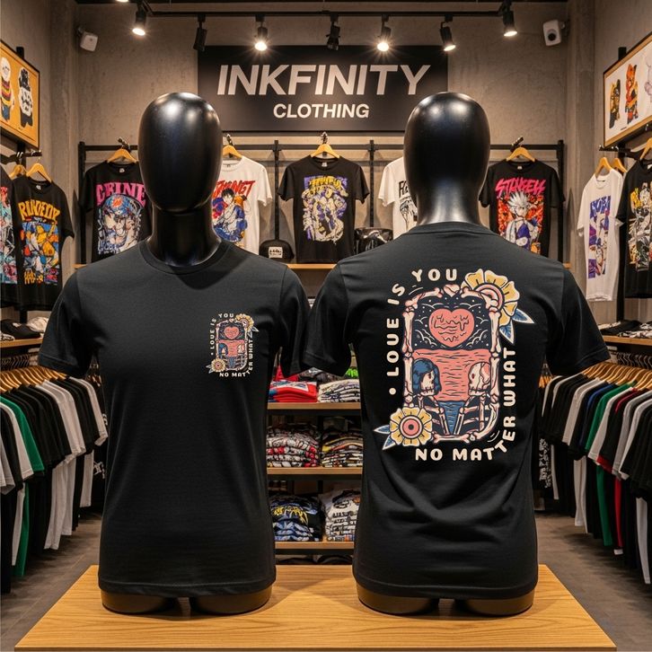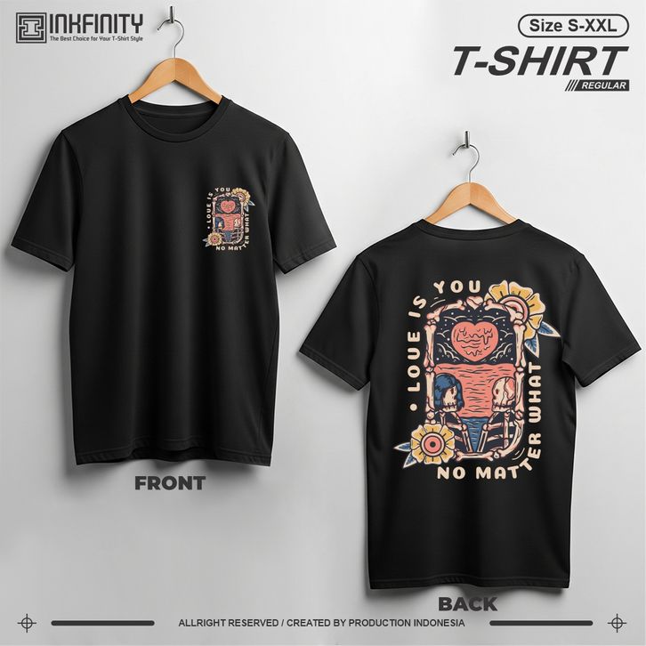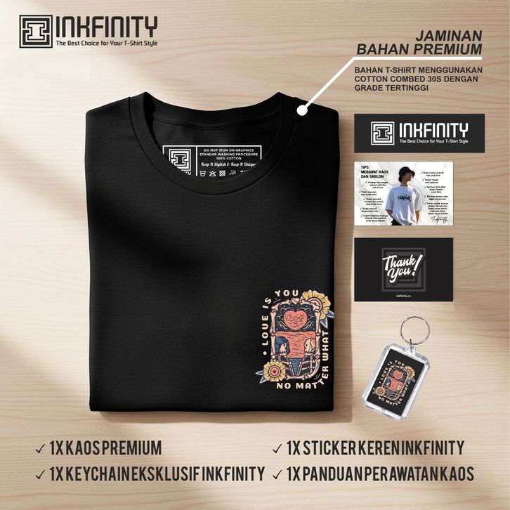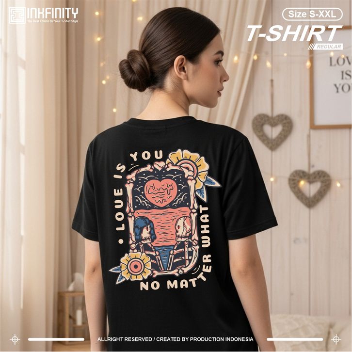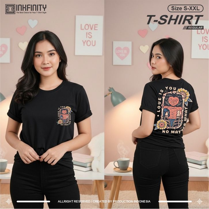 Kaos Wanita Aesthetic Love Is You INKFINITY | Katun Combed 30s Premium Hitam Lengan Pendek Kekinian | Sablon DTF Awet