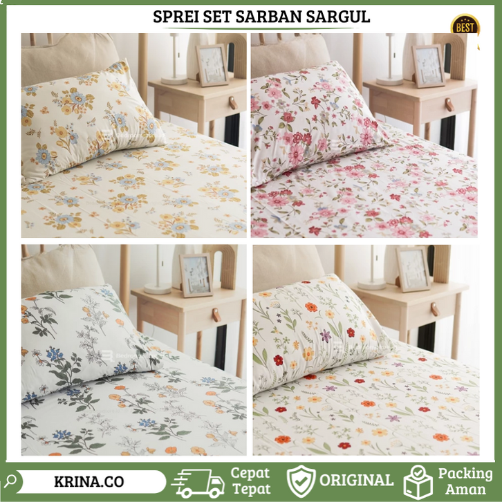 SPREI SET 200X200 180X200 160X200 120X200 POLOS MOTIF SEPREI NO 1 2 3 TINGGI 15 20 25 30 CM SUDUT KARET SARUNG KASUR MUR